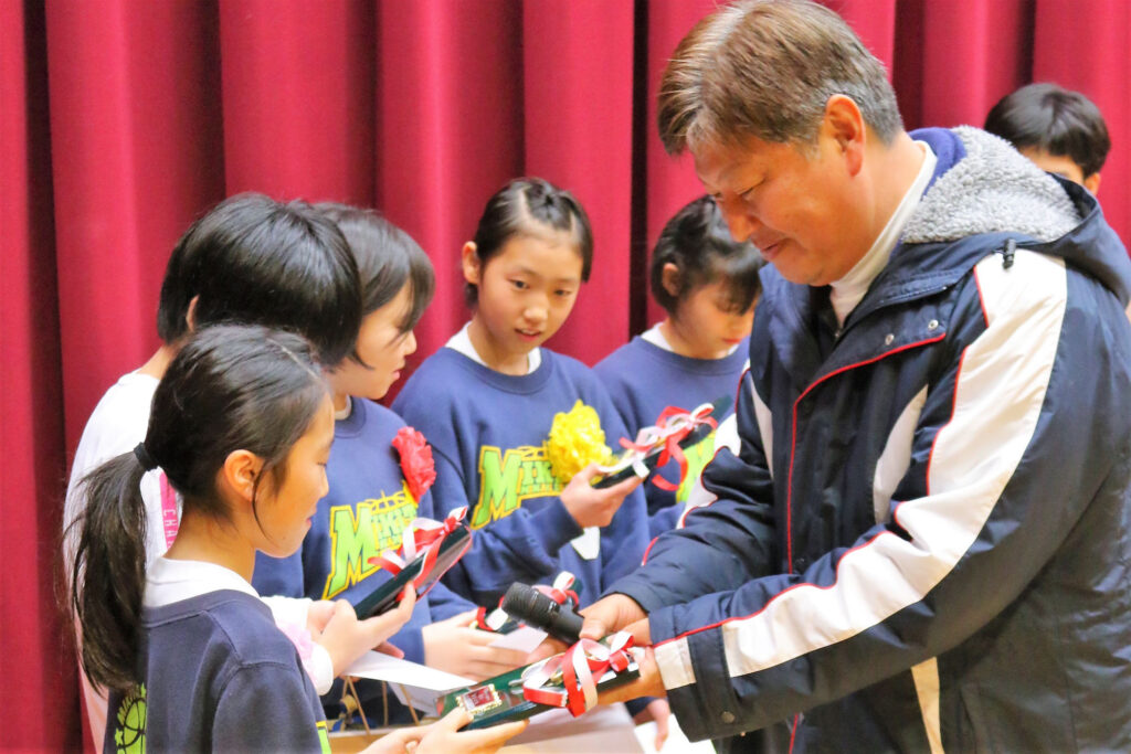 今年は、トロフィーが少なかっただろうと、最後の卒業記念大会の3位の盾を、6年生の人数分作っていただいたコーチ。