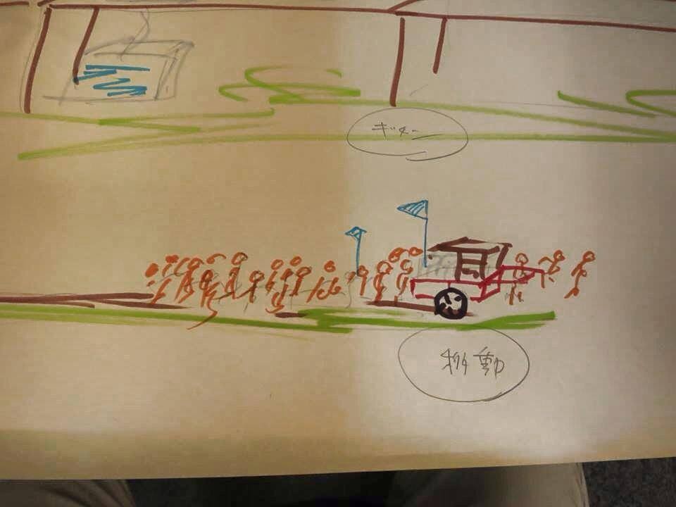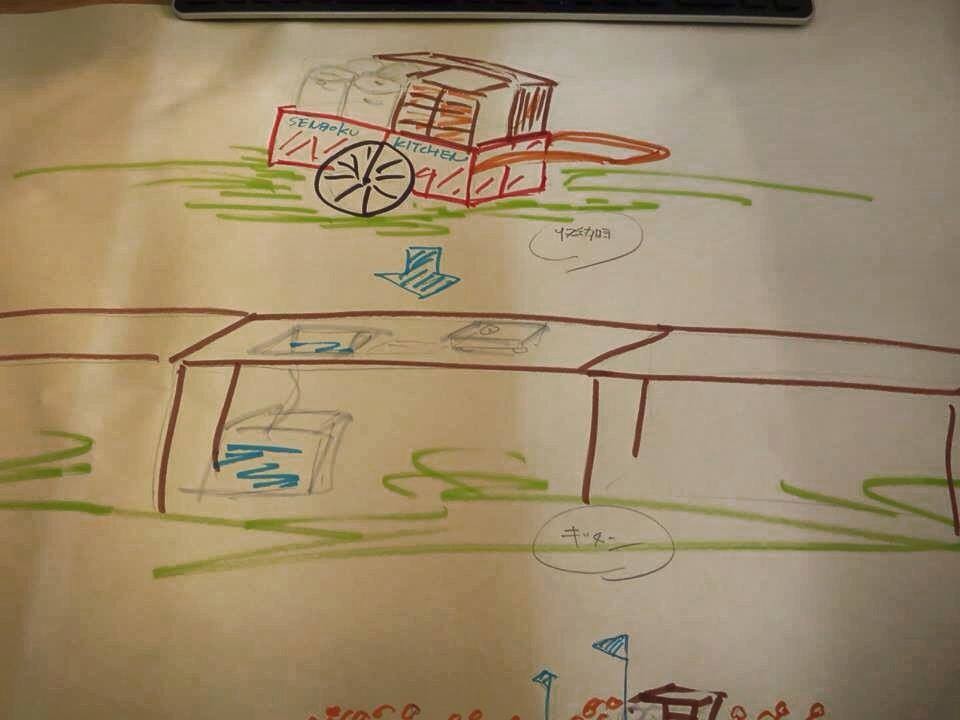 キッチンを積み込んだリアカーで、ニュータウン内を練り歩き、ゲリラ的にキッチンを催しその場を食堂にしてしまおうという企画です。これからニュータウンが抱える問題を解消できるキーワードがあり、結局昔ながらのだんじりは、地域の結束力やつながりを作ってきたんだと気づきました。また、泉北には近くに農があり、食によってつながりがができれば、またおもしろいのでは、と。