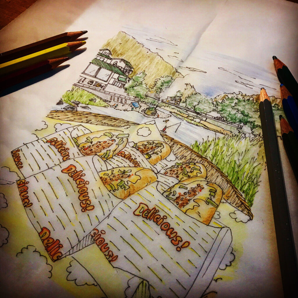 インターン、最終日に描いてもらったイラストを見ながら、