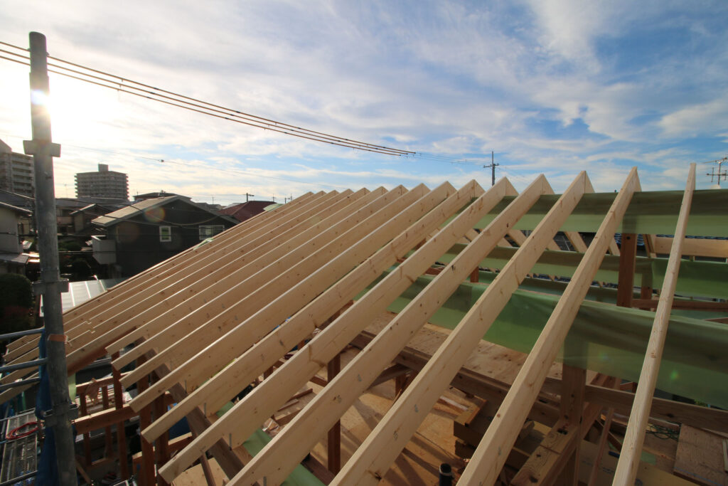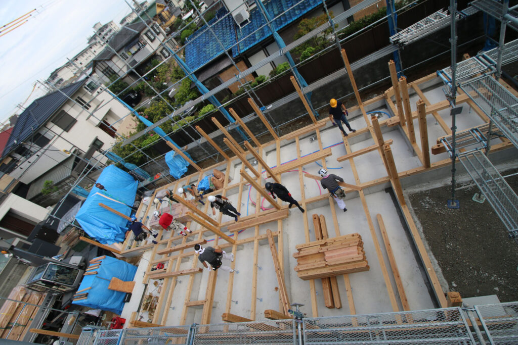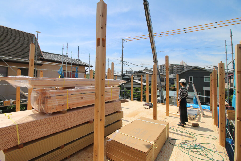 ちょうど上棟現場があり、一日張り付いて。