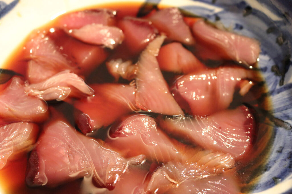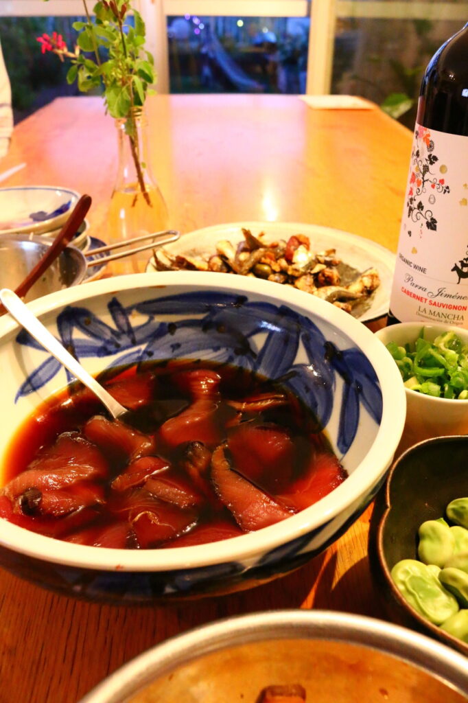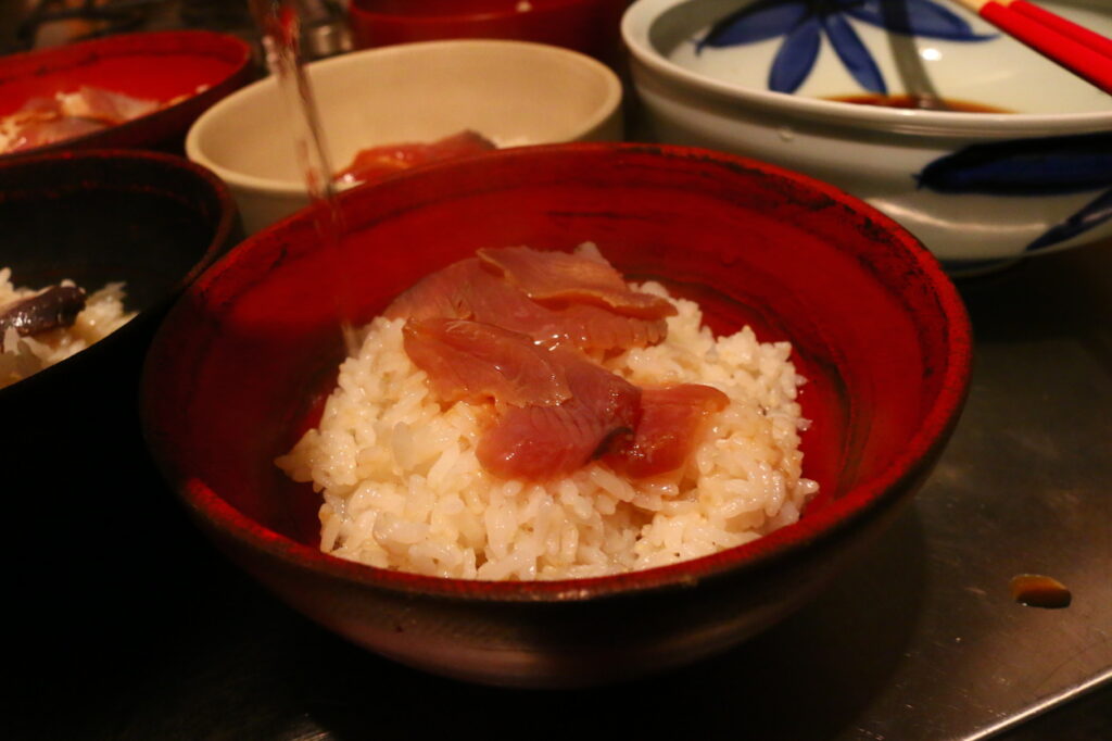 薄く切られたカツオは白く煮えてゆき、さきほどのたれをお好みでかけていただきます。