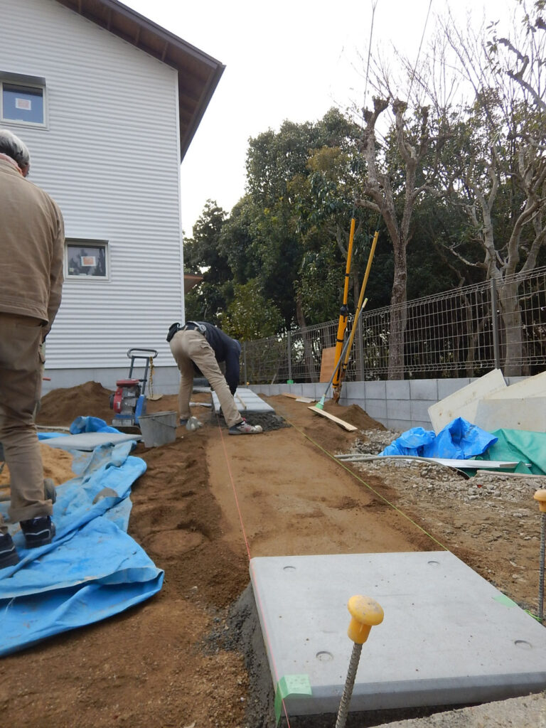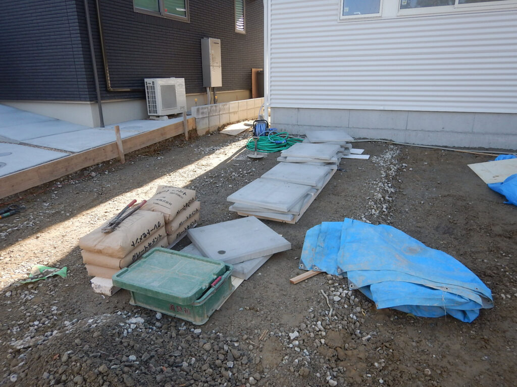 コンクリート平板というのは、600角で作られたコンクリートの板を並べてゆくもの。