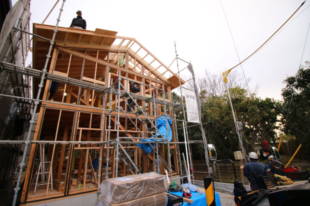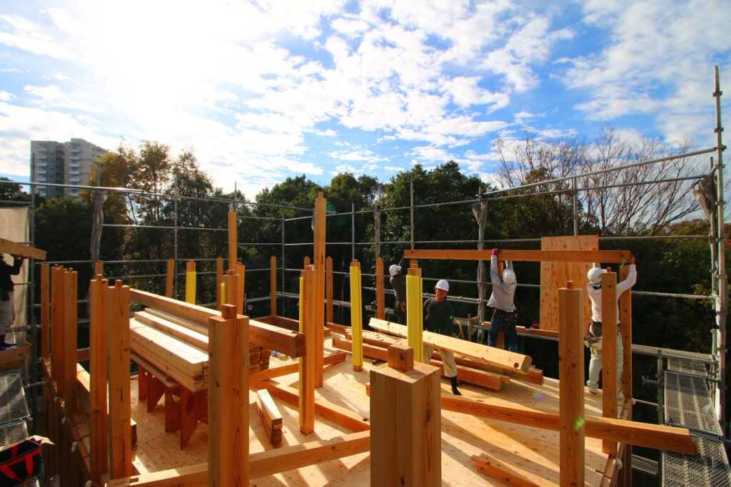 おそらく2階からも、この森が効いてくる、そんなことを実感した上棟作業。