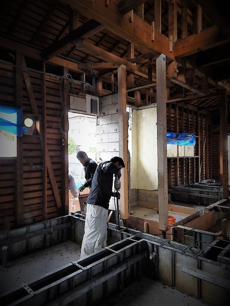もちろん手打ちで、丁寧にコンクリートを流し込んでゆく。