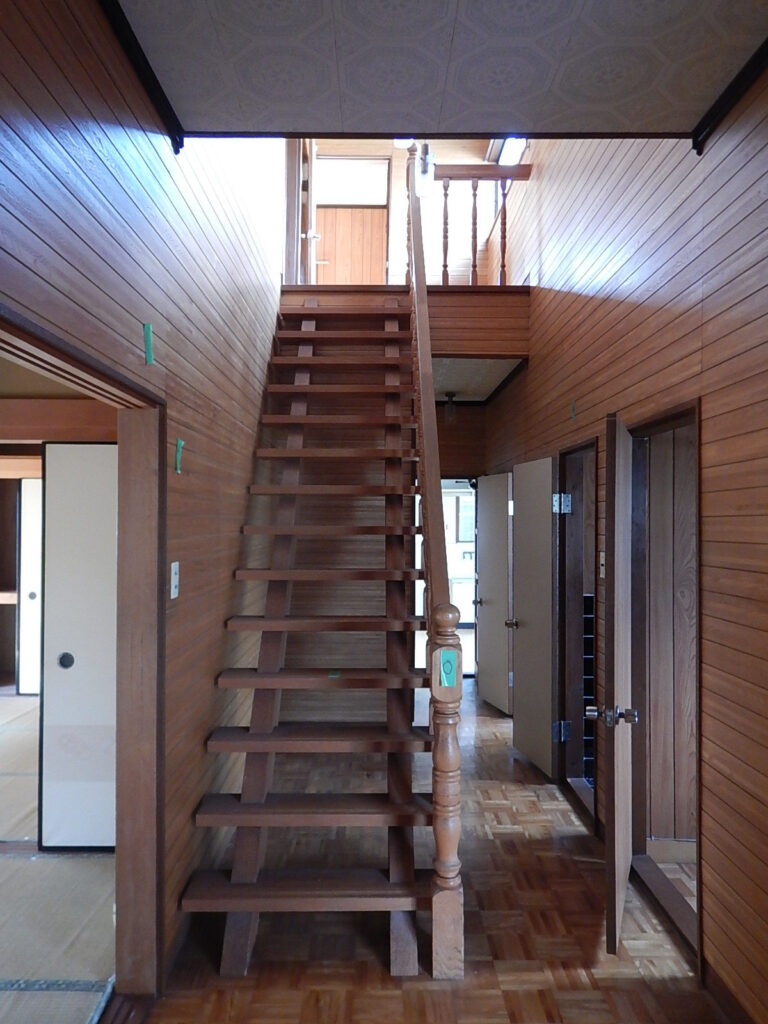 今回、この階段はぜひ残したいと思いまして、ここだけは解体せずにおいておきます。