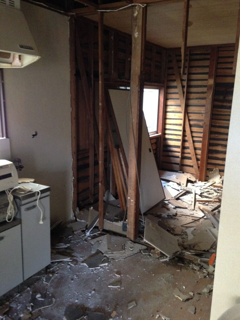 スケルトンですから、内部にある造作関係はほぼ完ぺきに解体撤去してゆきます。