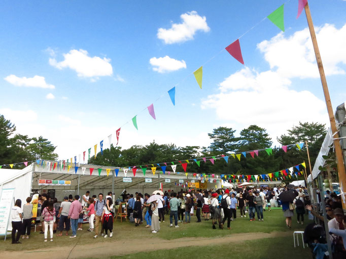 緑豊かな公園内で、日替わりシェフのイベント限定料理(シェフズキッチン)や、カフェメニュー・手作りのお弁当が並ぶ青空キッチン、青空ピッツァの他、奈良食材を使用したパンやお菓子、シェフや生産者の屋台料理など、秋空のもとオープンテーブルで楽しめる、奈良最大のグルメイベントです。