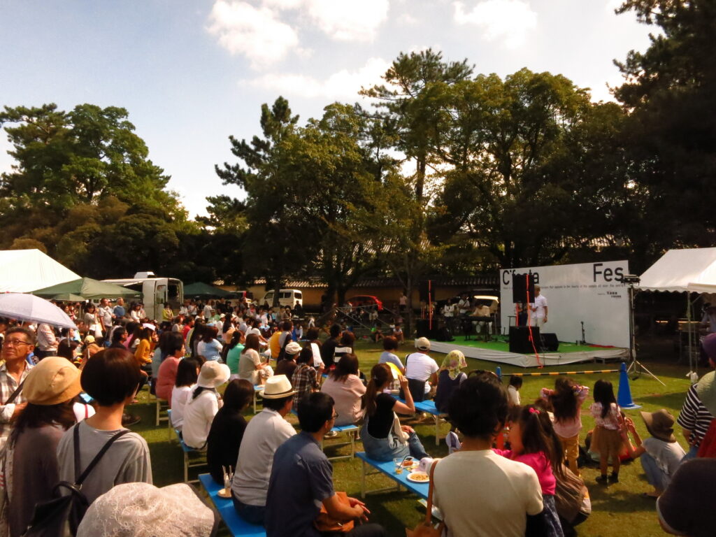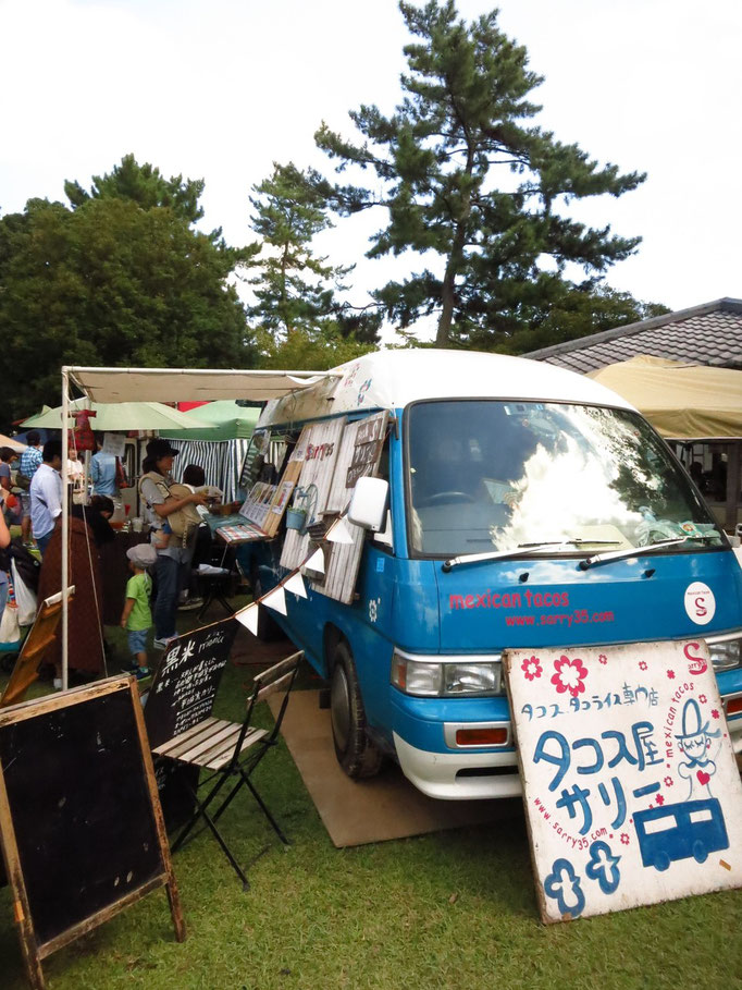 屋外でやっているということ、地産地消の食がテーマであること、音楽などとコラボして開催していること。