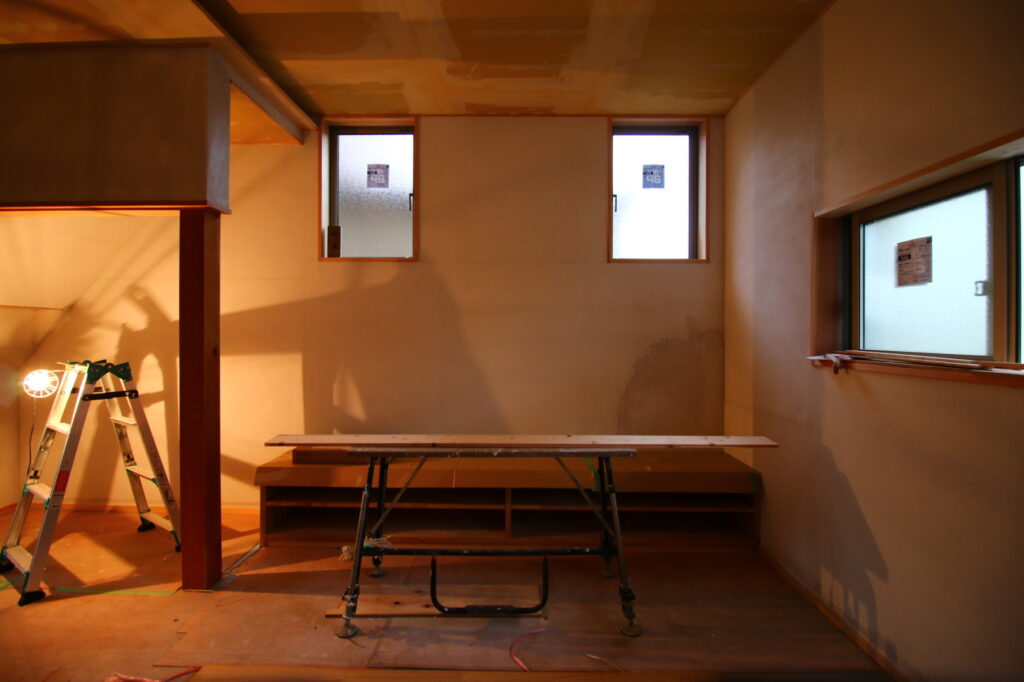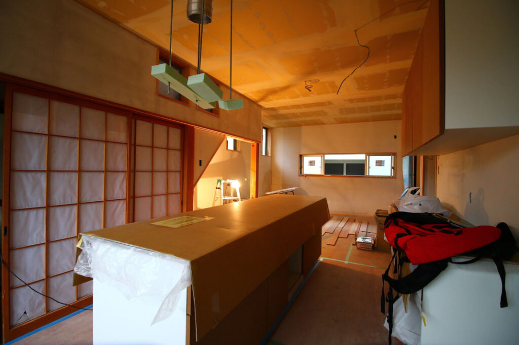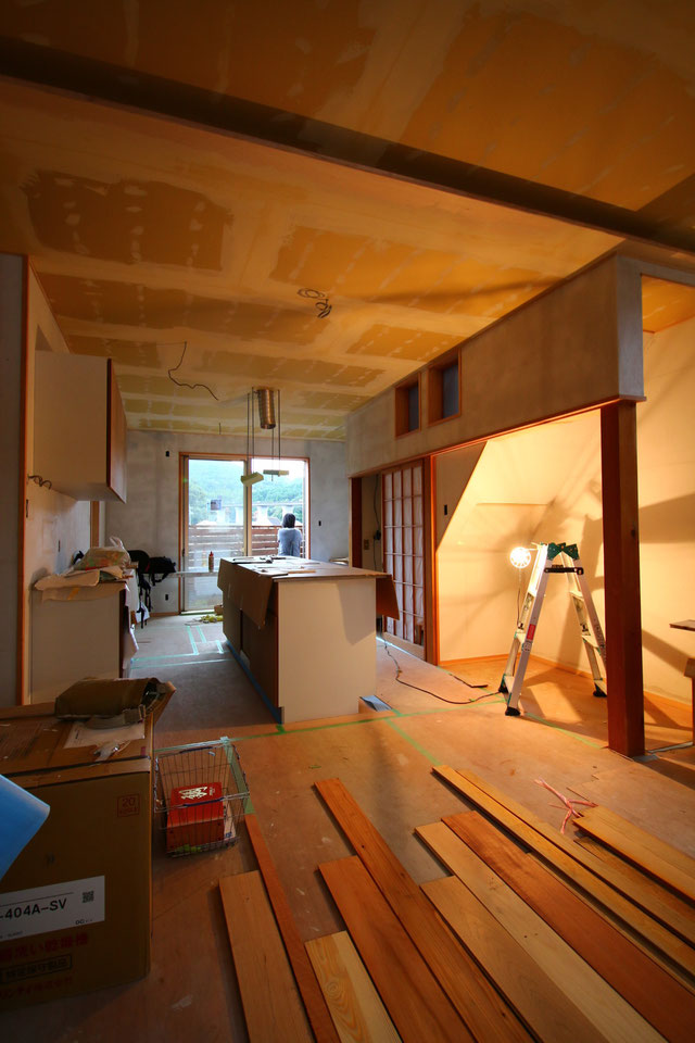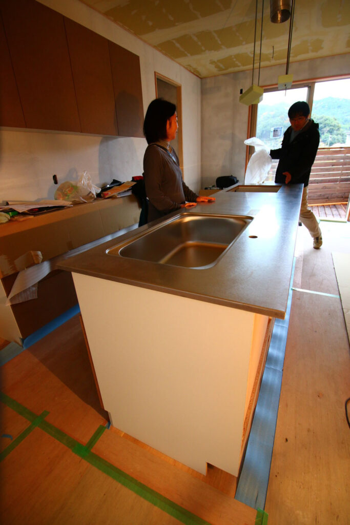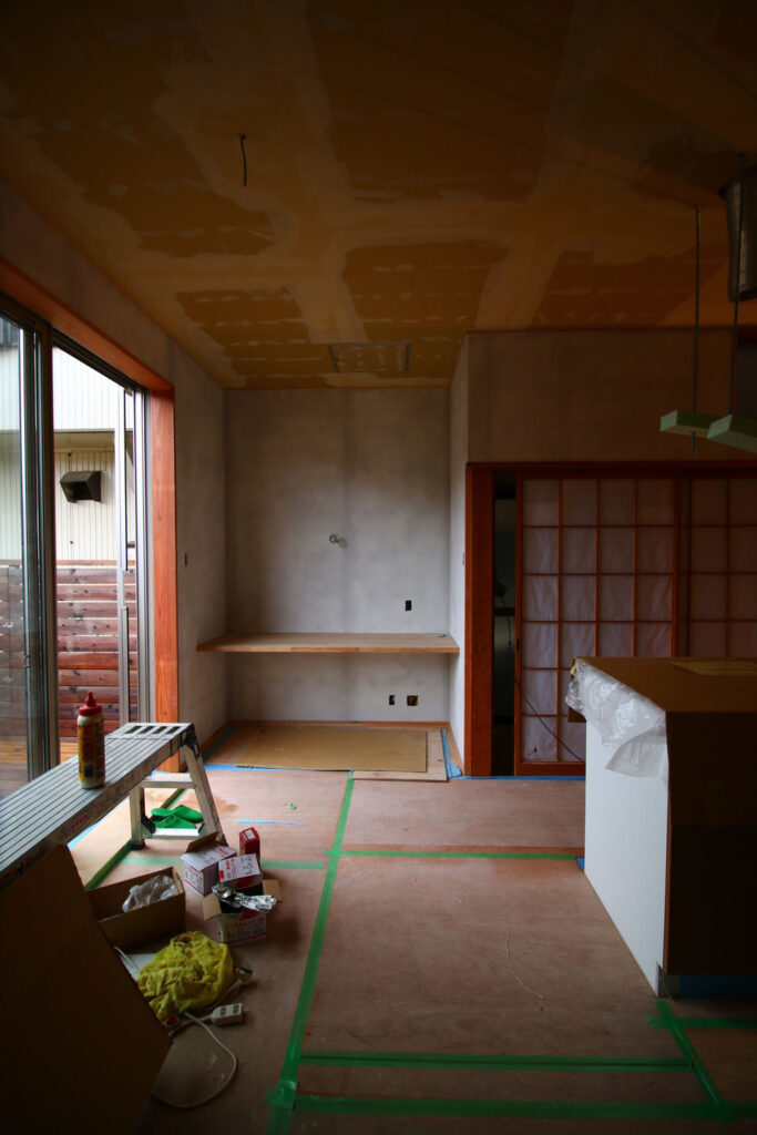 大工さんが造ってくれる家具工事と共に、仕上げ工事を進めてゆく。