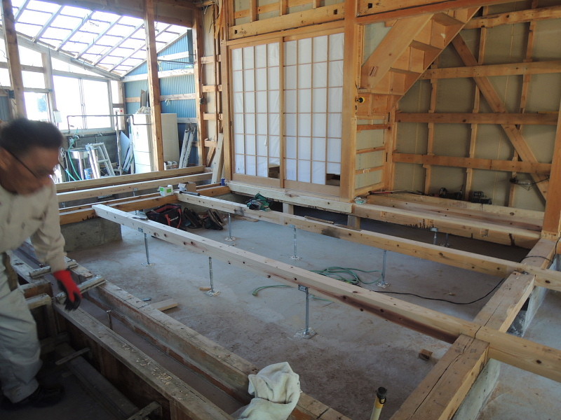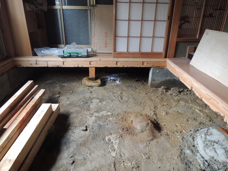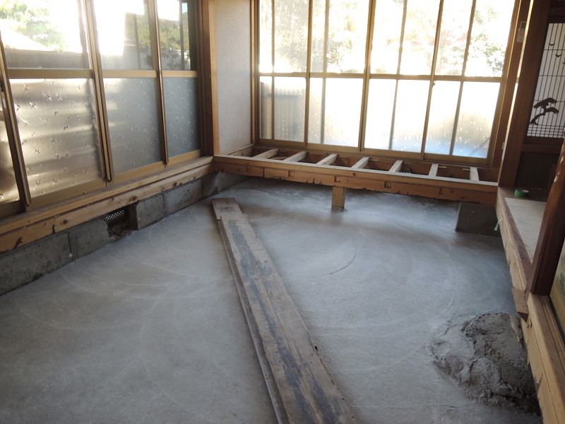 和室の内装は工事予定になかったが、土間コンクリート打設のために、いったん床を撤去して、土間コンクリート施工。