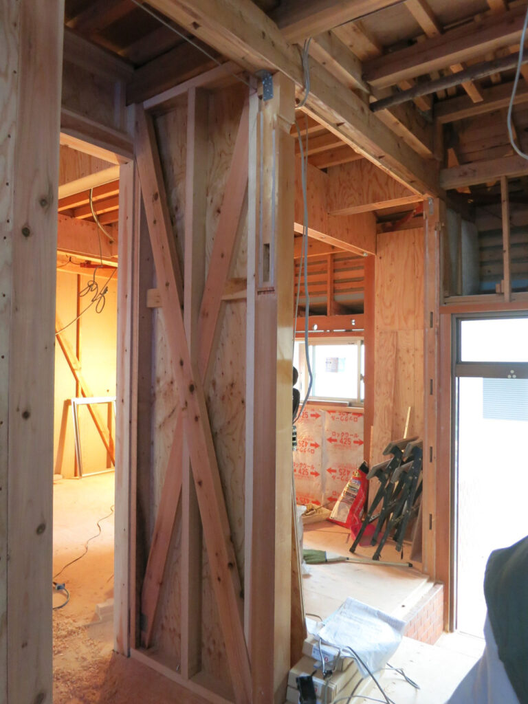 開口部以外の壁面は、ほとんど耐力壁となった。