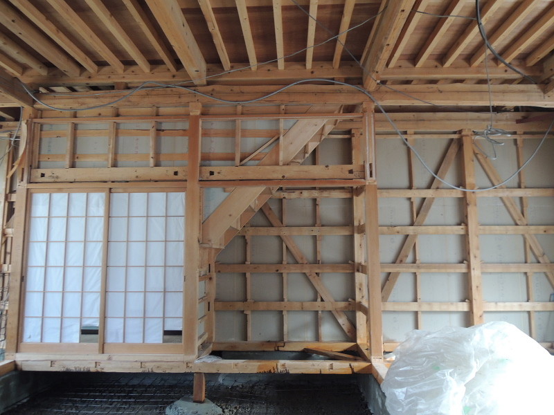 昔ながらの、貫工法で、またあるところは筋かいが設けられていた。