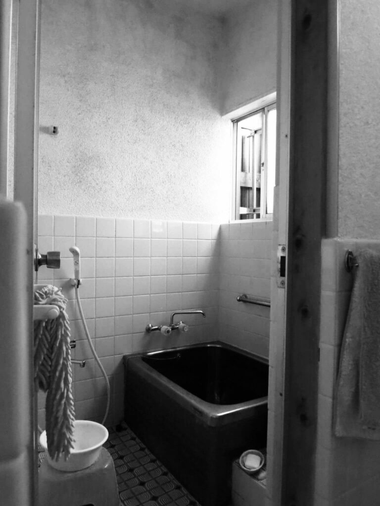 プラン上、少し小さめの浴室でいた。現状の浴室は、リノベーションによって、洗面所となります。