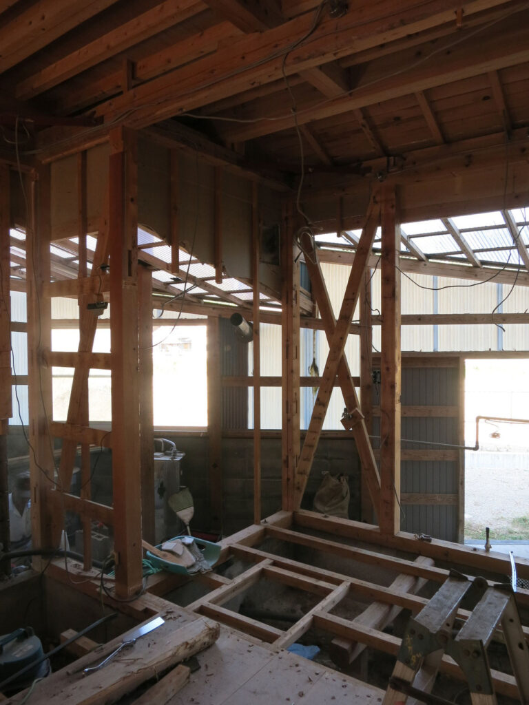 解体してゆくと、在来の浴室であったため、高基礎で施工されていて、構造補強部分としては、耐力壁になりにくい場所になるので、注意すべきところです。
