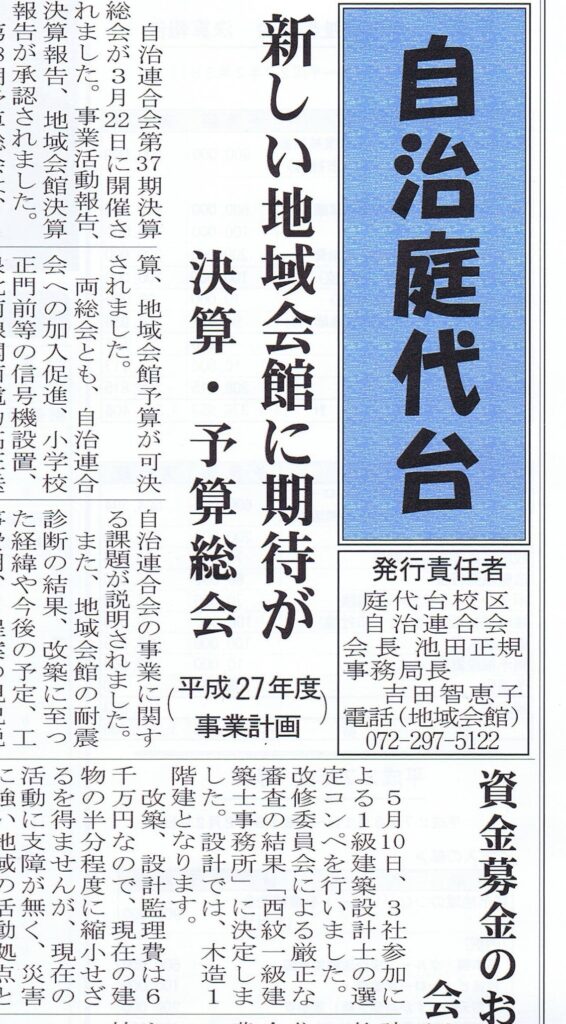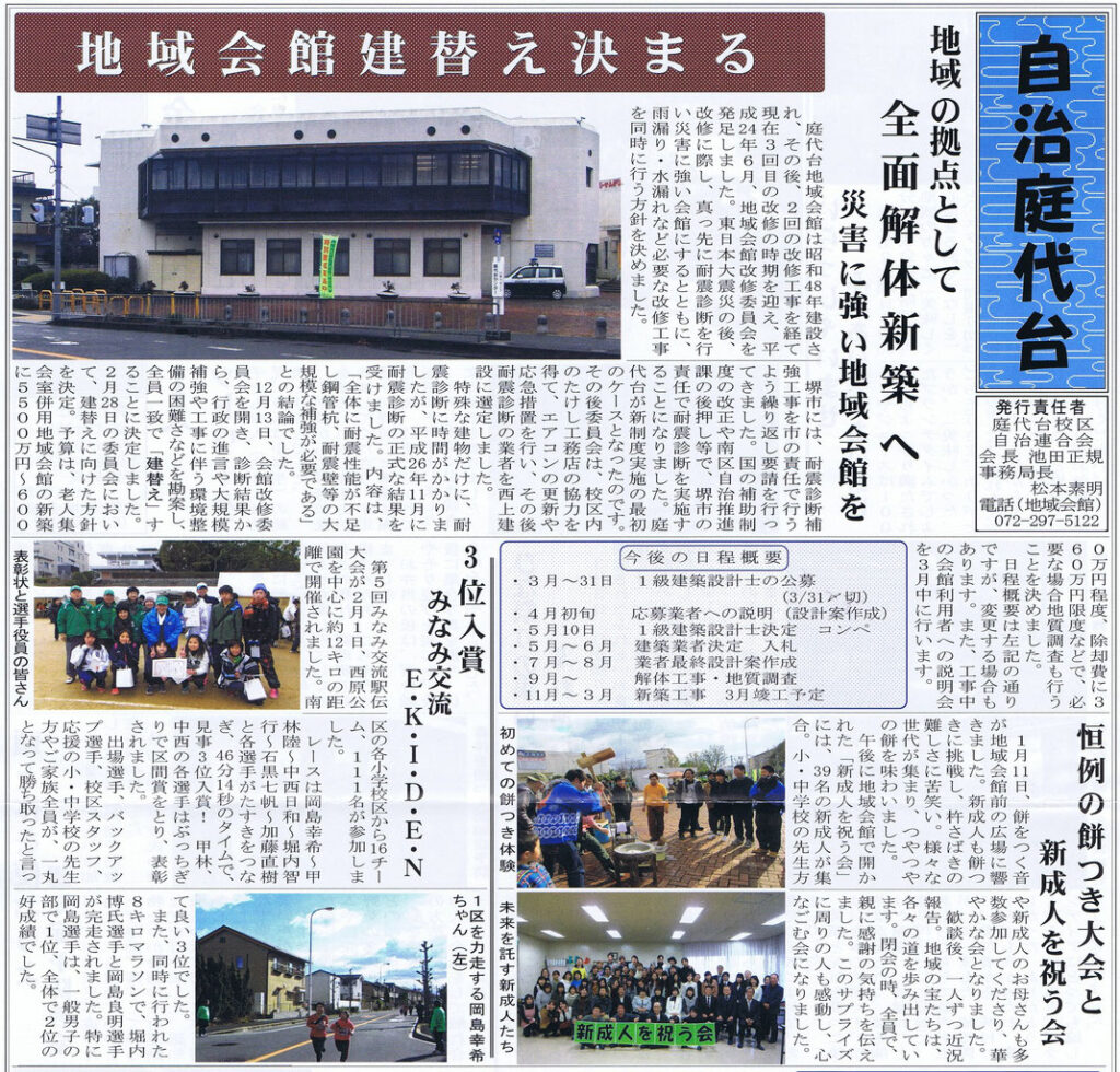 泉北ニュータウン 庭代台に住み高校の同級生から、回覧板まわっててな、という1本の電話から始まりました。