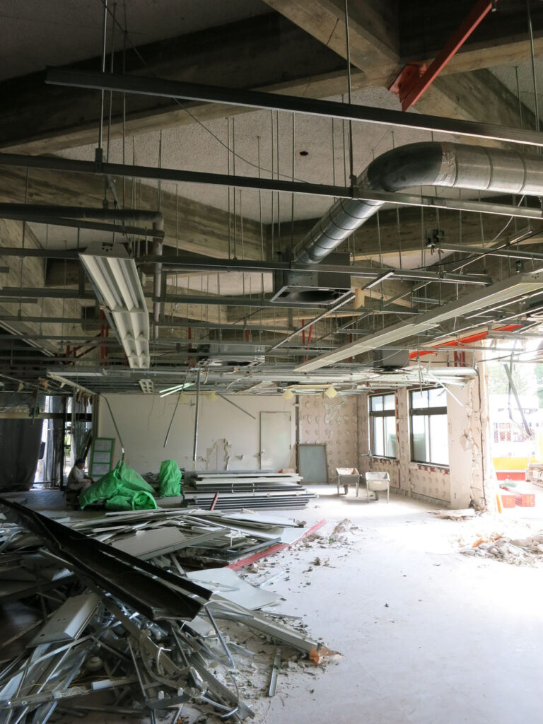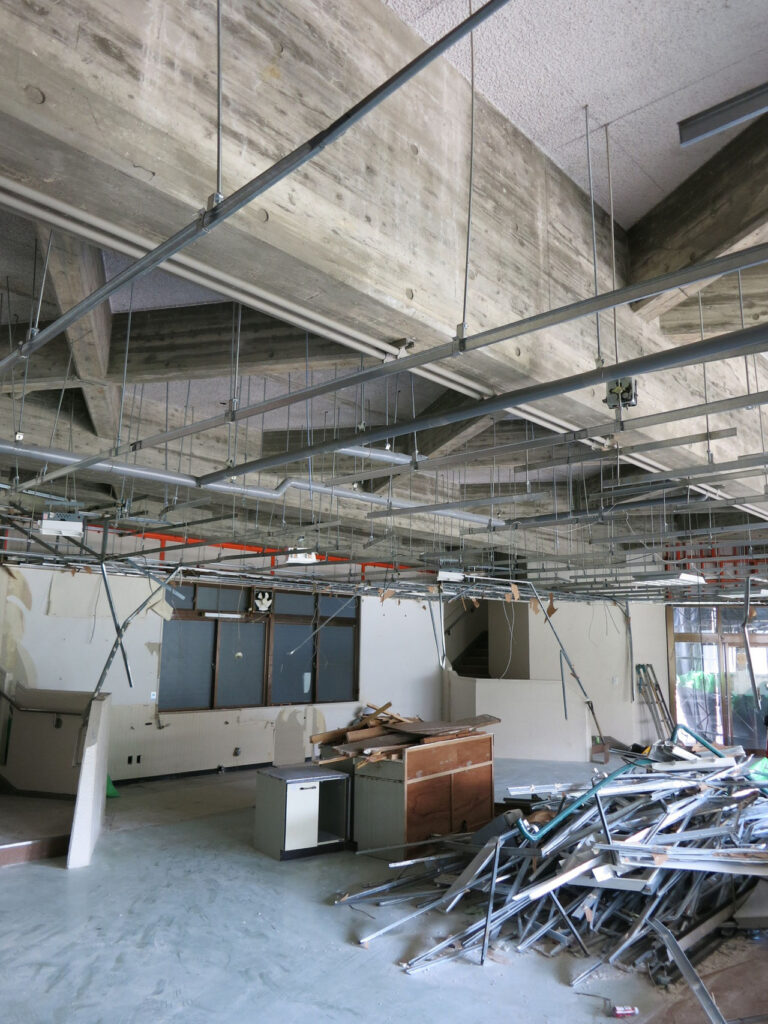 一度は、この鉄筋コンクリート造の状態で、耐震工事を行い使い続ける検討はされたようですが、工事予算を比較すると、耐震工事の工事費が、高くついてしまったとのこと。それだったら、規模を縮小して、新たに造るという計画になったそうだ。
