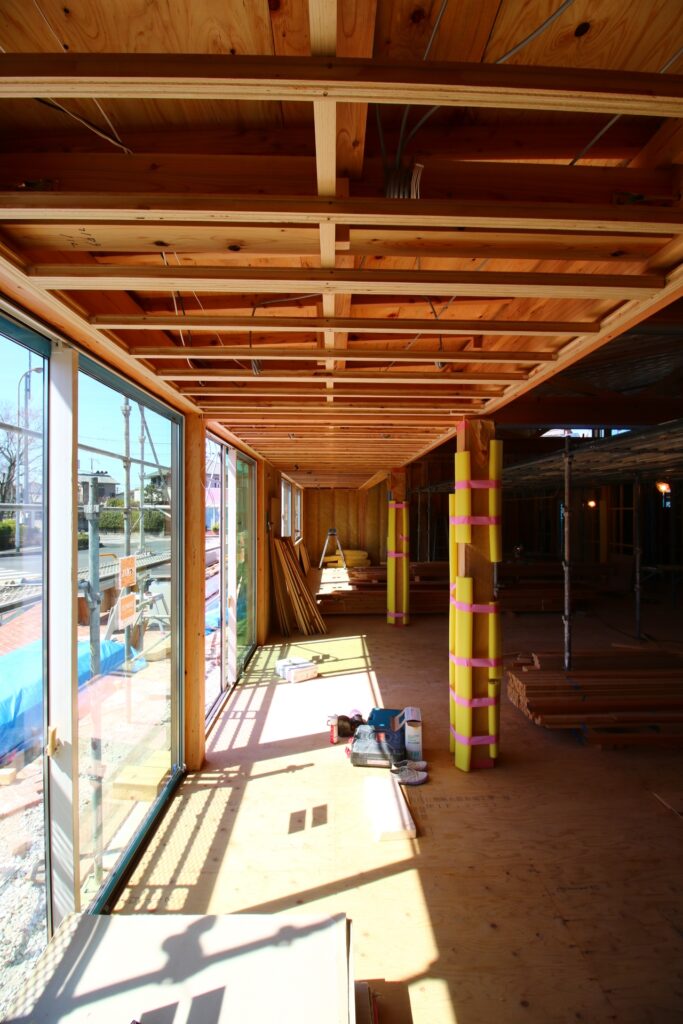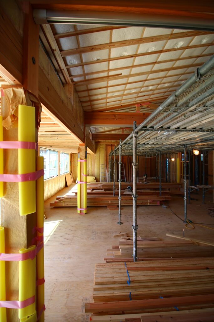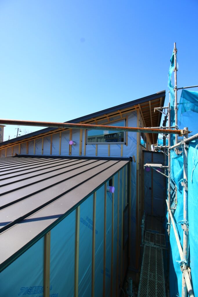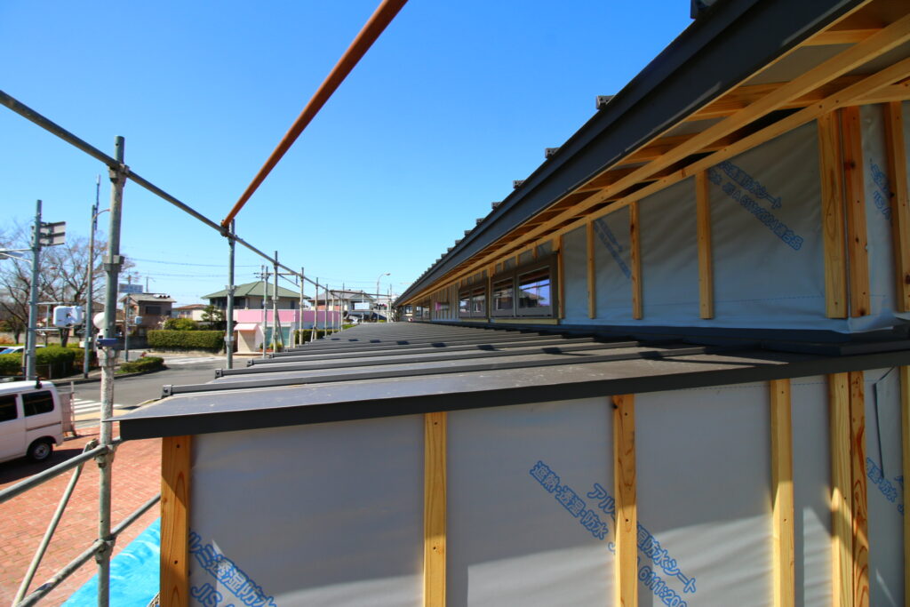 上棟終了後は、外部から先行して工事を進めていった。