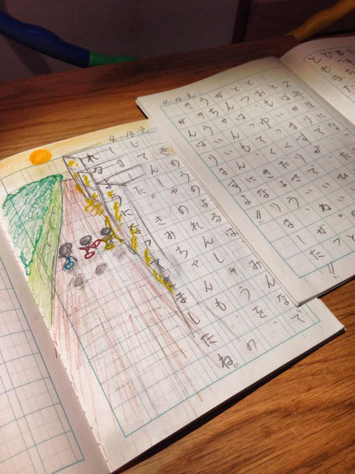 もう、こんなに書けるようになったんや。普通は、そんな事で子供達の成長を感じることができる交換日記。最初は、父が「日記書いたか!?」といい調子でラリーしてましたが、最近は、「とーちゃん、まだ〜?」と…。もう、そんなに追い込まれるように、なってしまったか…。いずれにしても、子供の成長を感じる、交換日記。