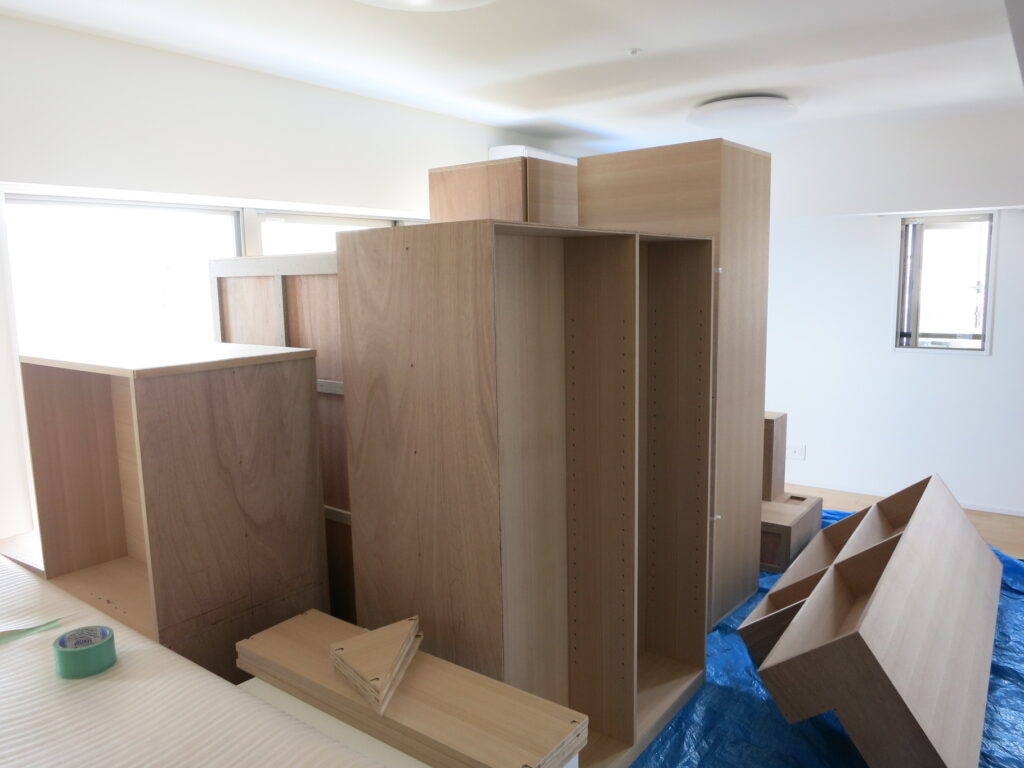 なかなかのボリューム、これらの家具をひとつずつ組んでゆきます。