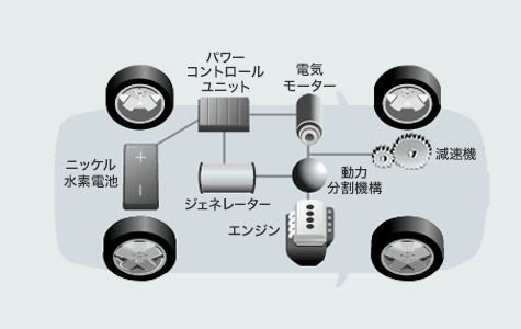 車のハイブリッドは、減速時にブレーキで発電するのと、アクセルを踏み込んだ時に、発電する仕組み。