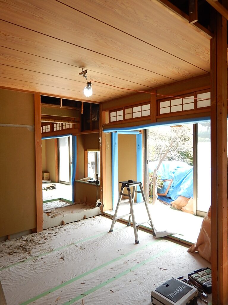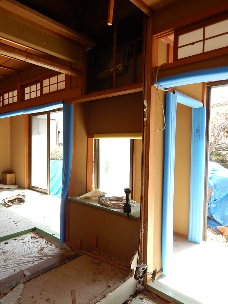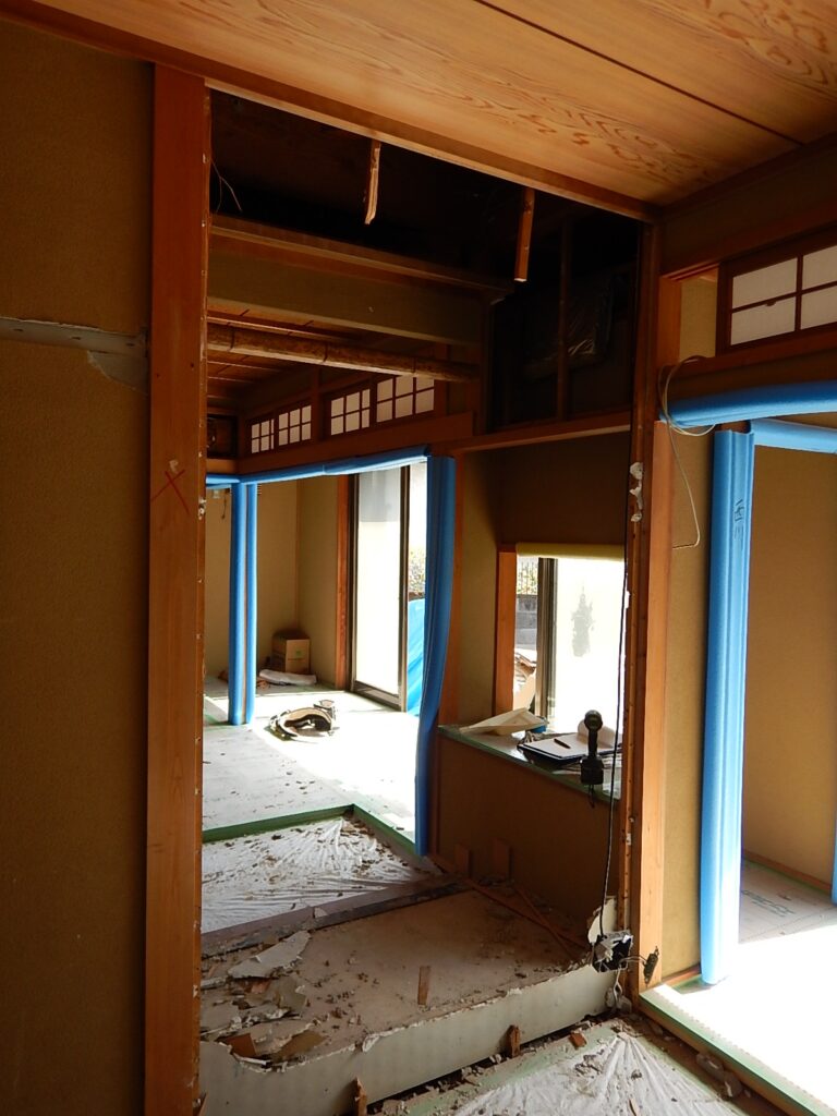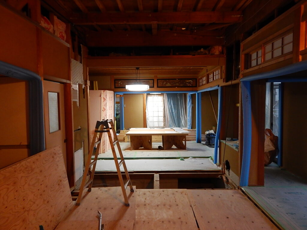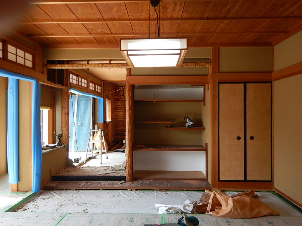 既存茶の間から、既存本格和室への壁、ぶち抜いた。