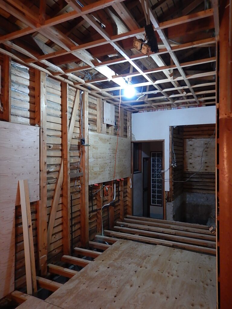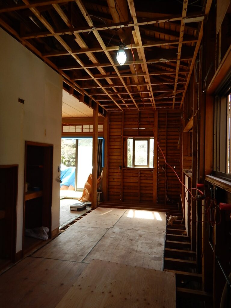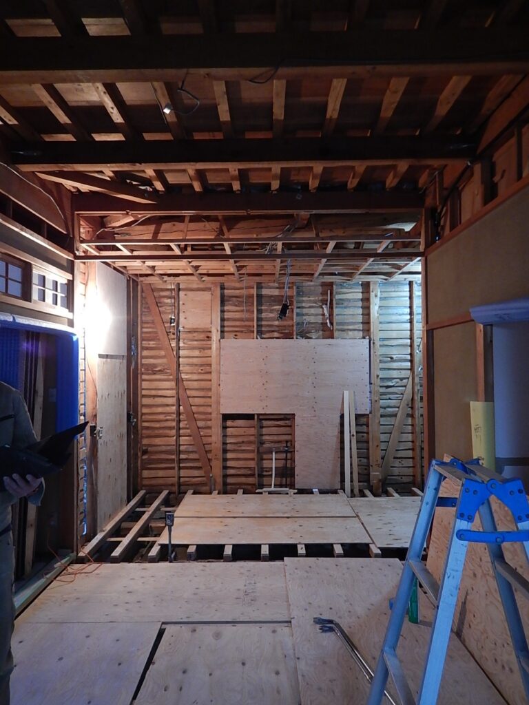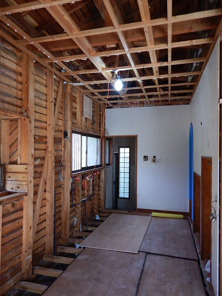 こちらも、既存間仕切りや内装は取っ払われ、躯体が現れる。