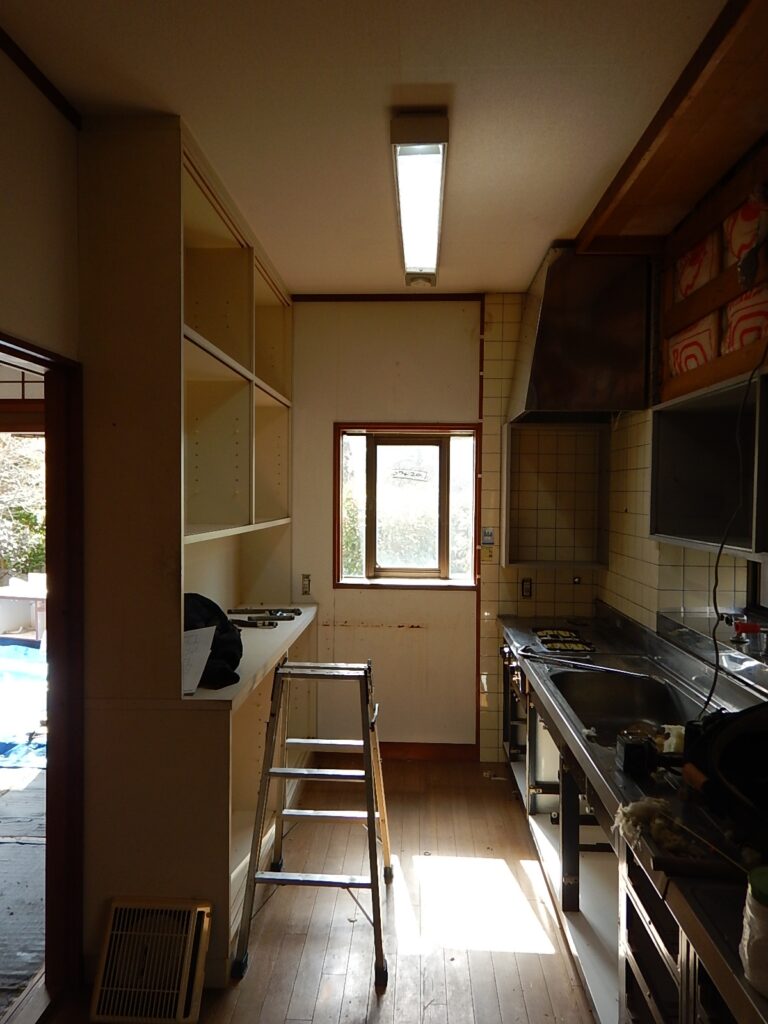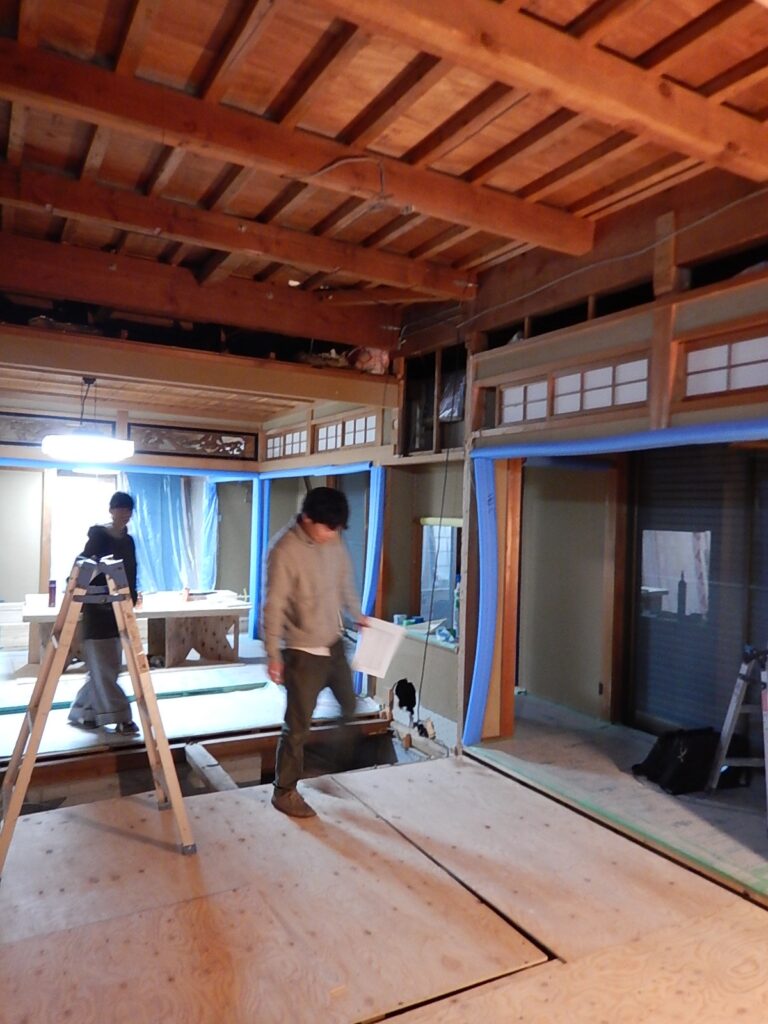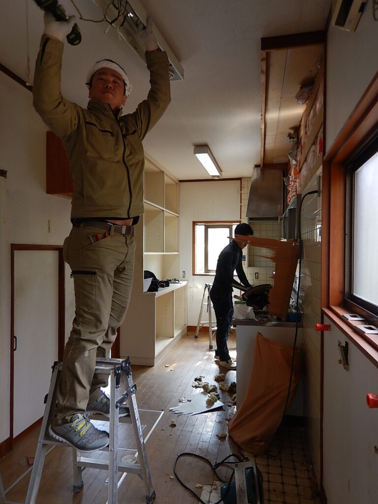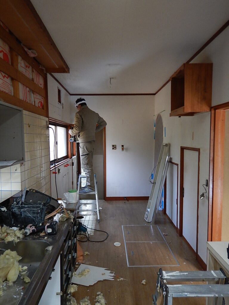 壁を取っ払うも、内装はそのまま使うところが多いので、じっくりおさまりを考えながら進む。