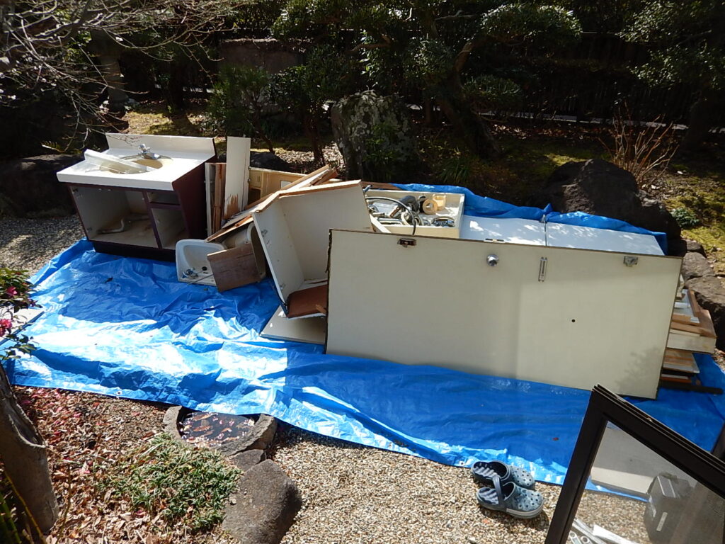 解体していった順番から、古い住宅設備機器がならんでゆく。