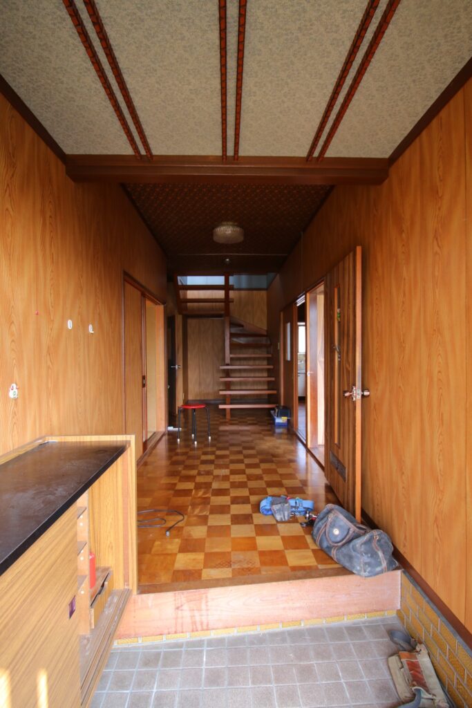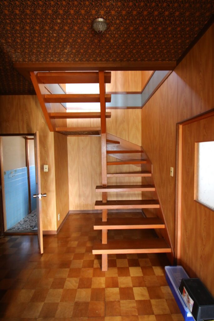 玄関入ると、玄関ホールから2階に上がる木製ストリップ階段。