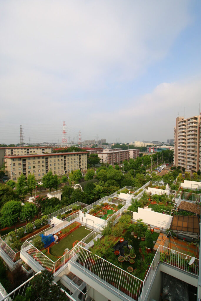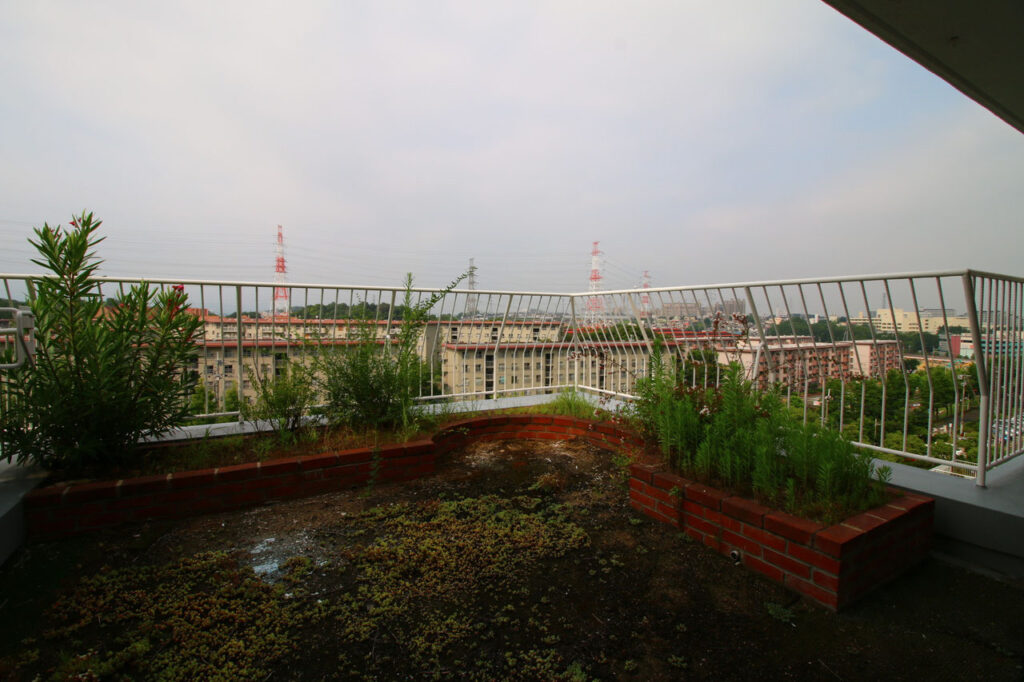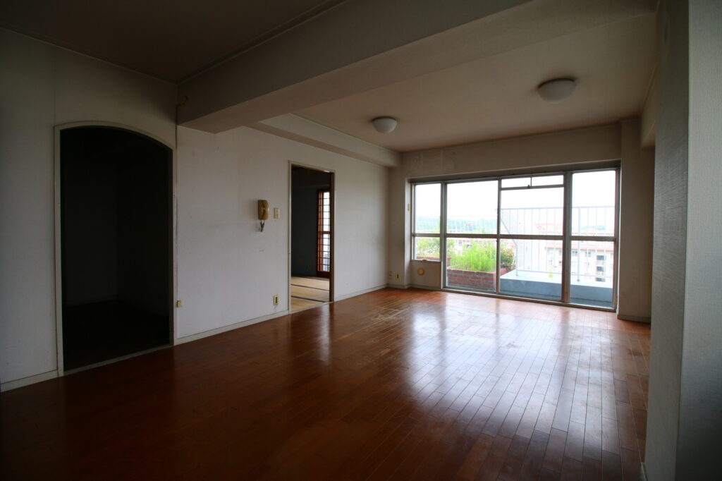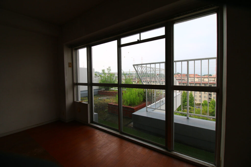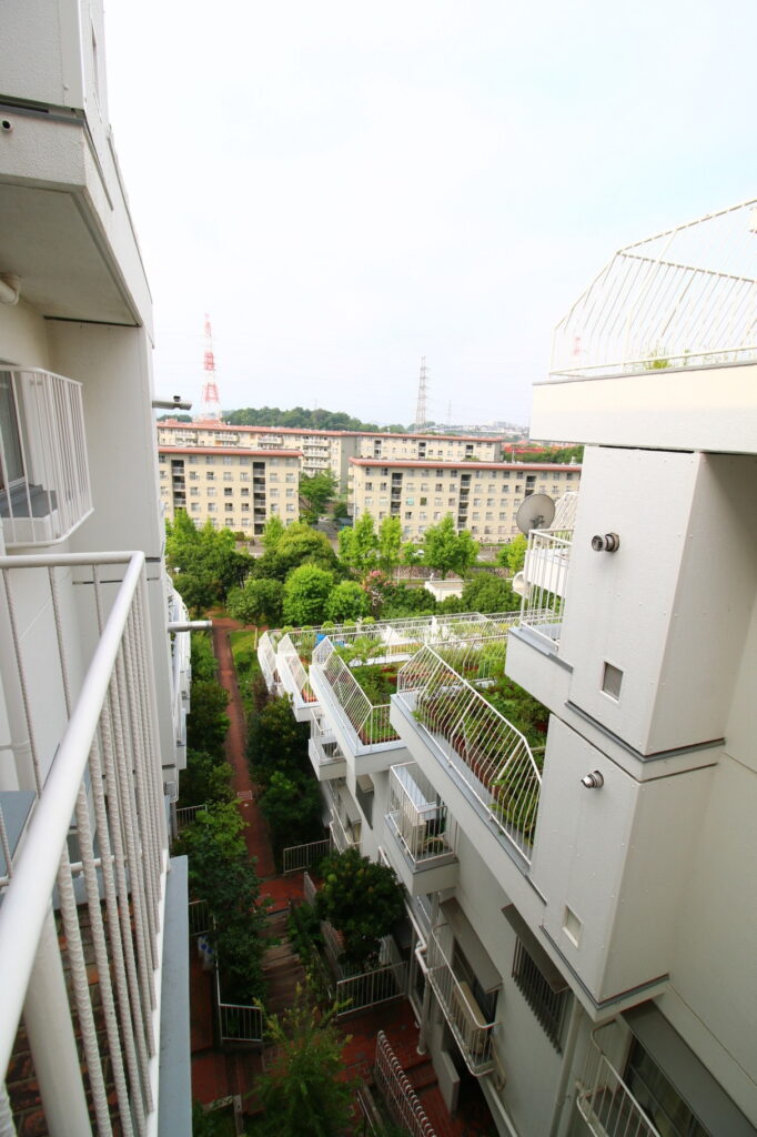 丘陵地に建てられたマンションは、丘陵地の勾配に従い段々畑のように配置されています。今回のリノベーションさせていただくお部屋はその上層部になります。