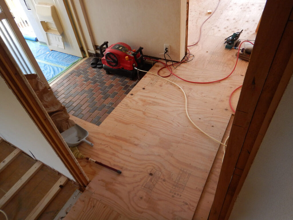 このあたりも、電気ガス水道、設備業者さん一緒に、床の逃げ配管。