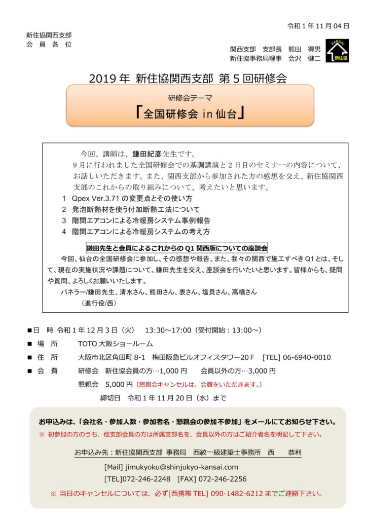 さて、新住協関西支部の研修会も、今年最後となりました。