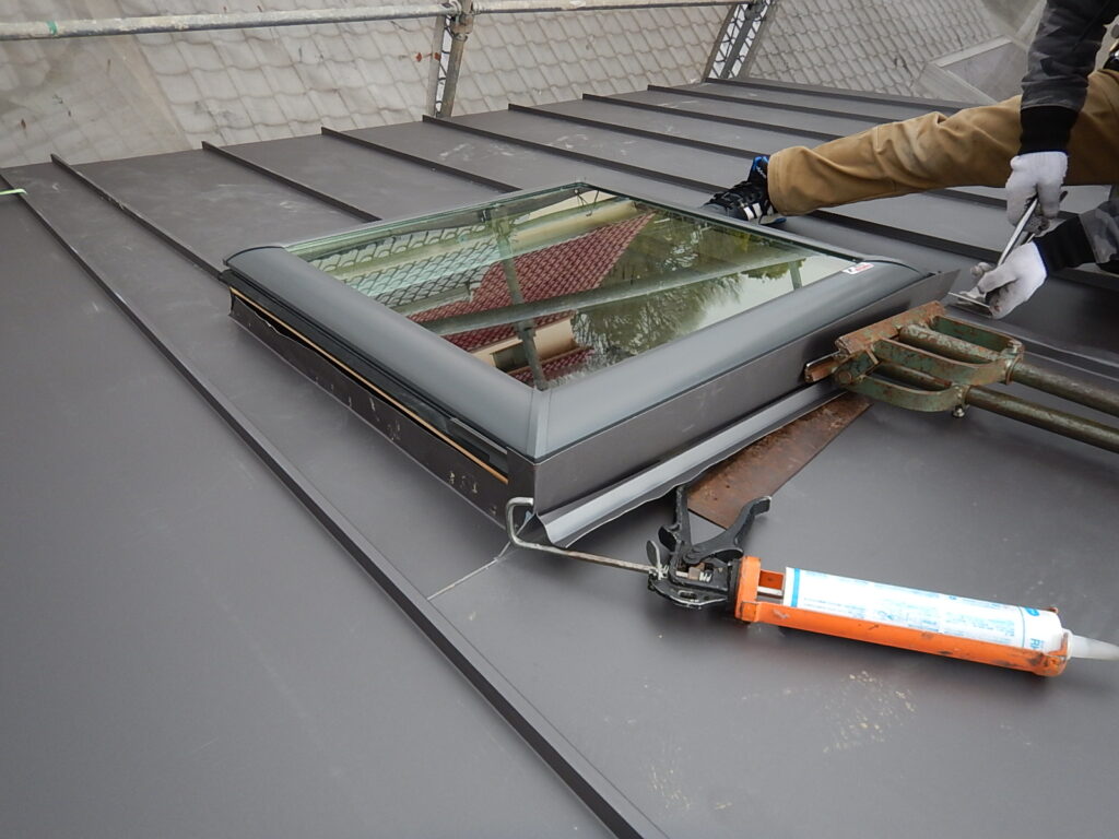 その外壁の気密ラインが屋根に上がっていき、屋根はシート気密に連結します。