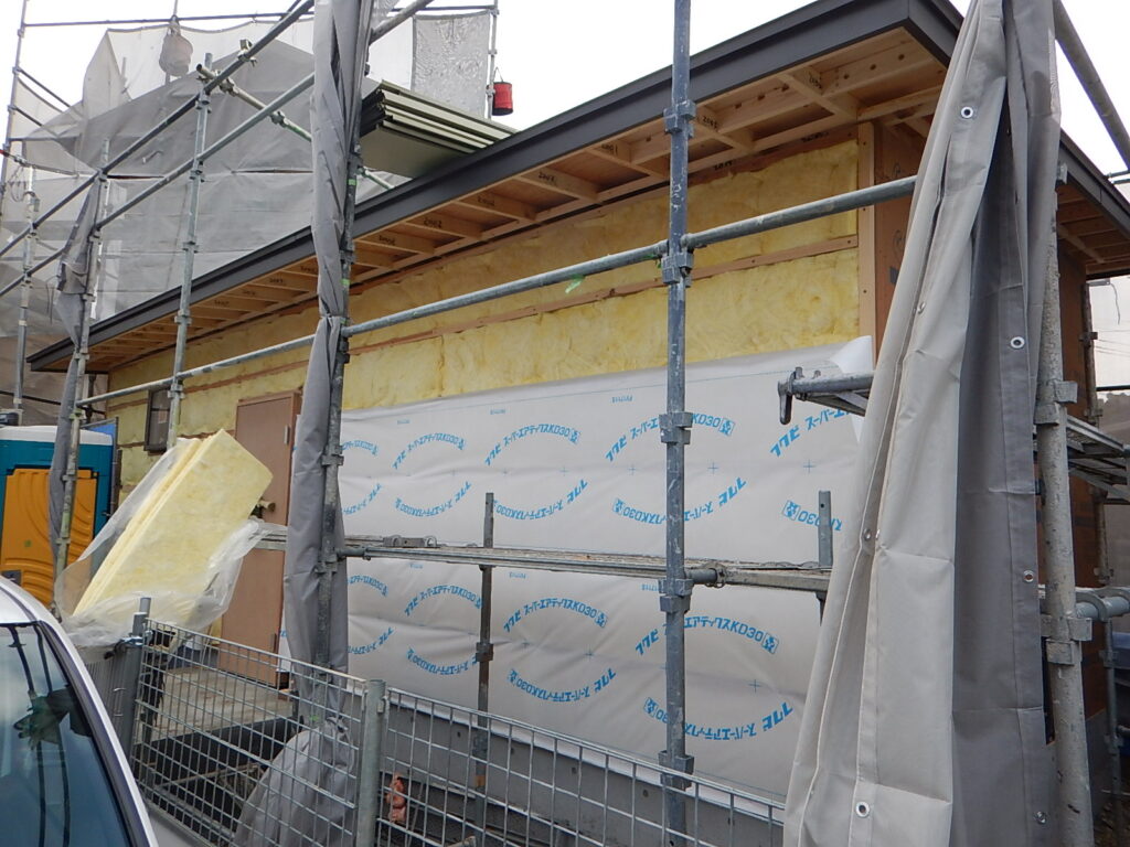 今回は、真壁仕様ということもあり、外壁に付加断熱施工。