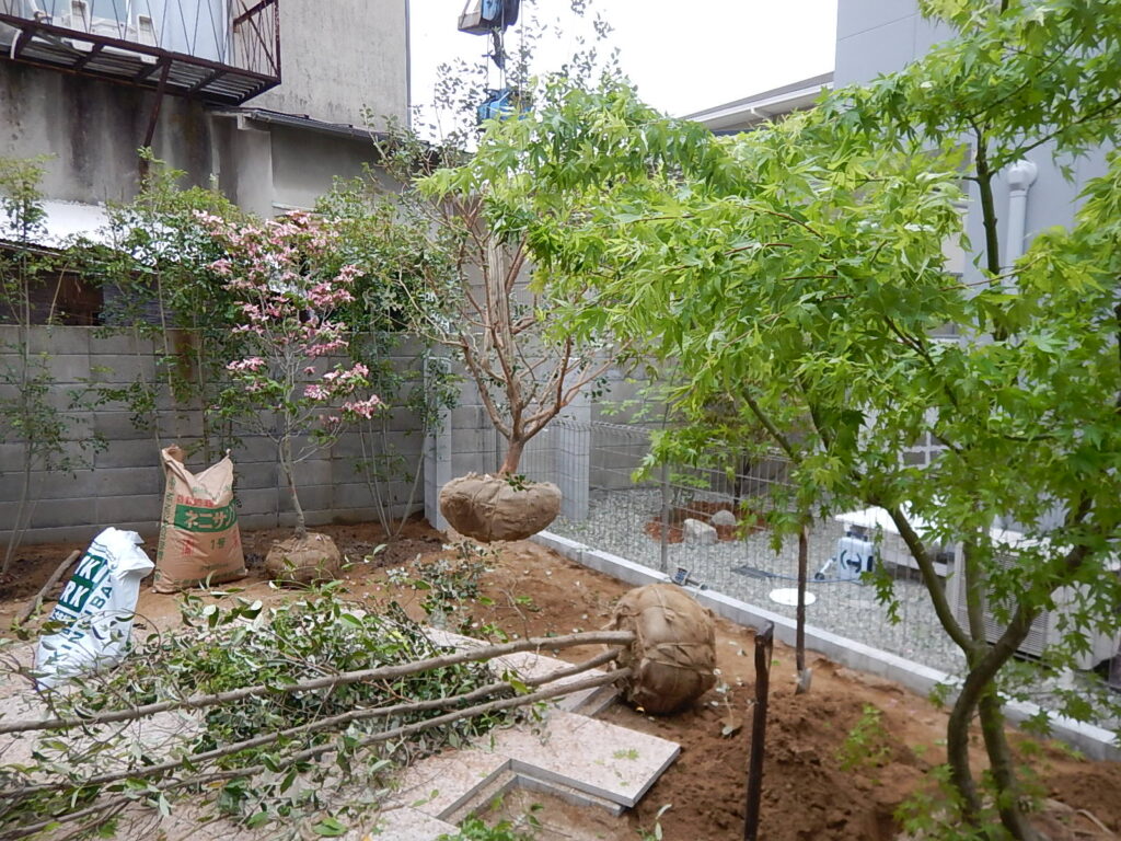 今回の造園工事は大きなテーマで、外構工事を控え、施主さんと山に木を見に行きました。