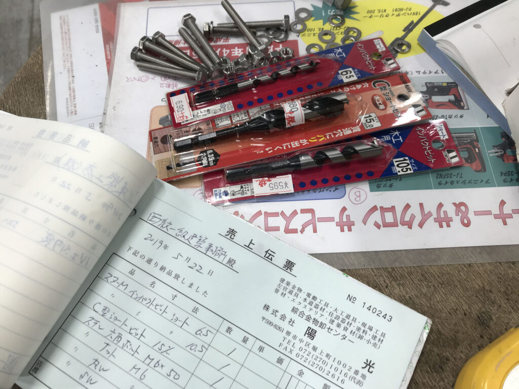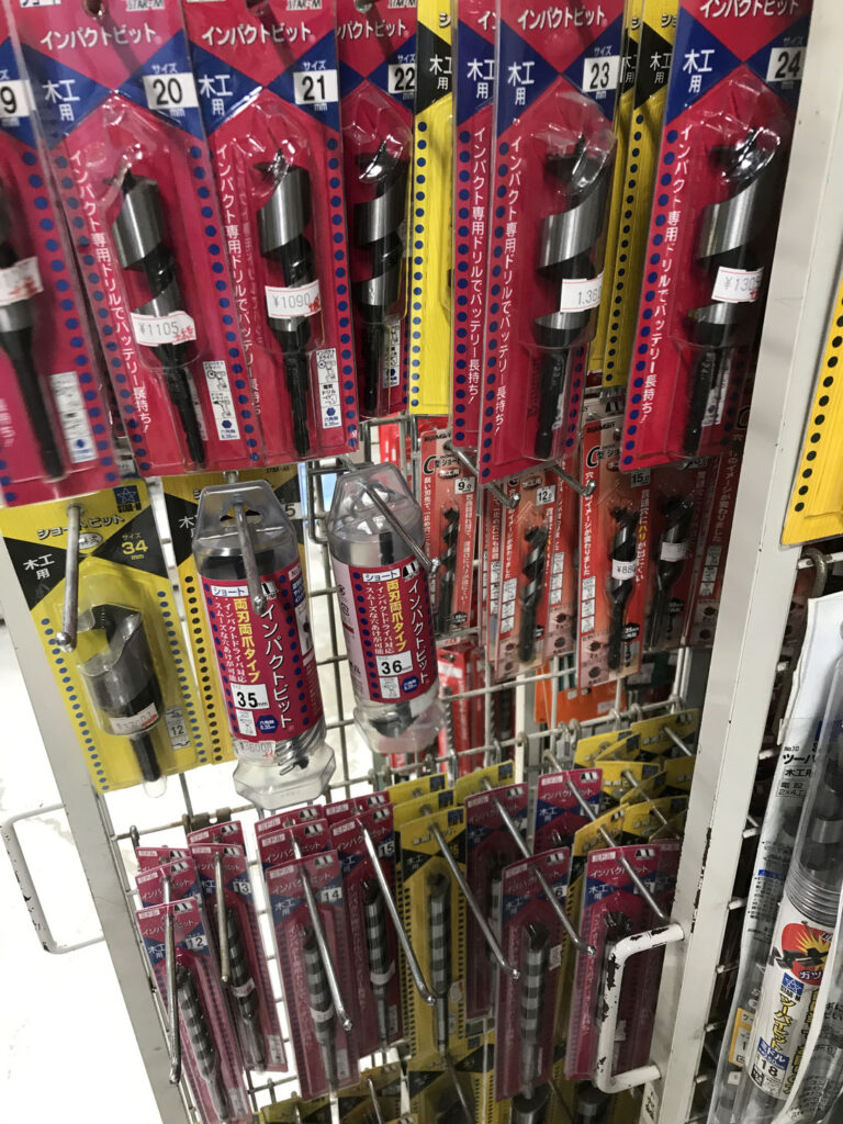 事前に、金物屋さんに寄り、穴あけの工具を確認しておく。