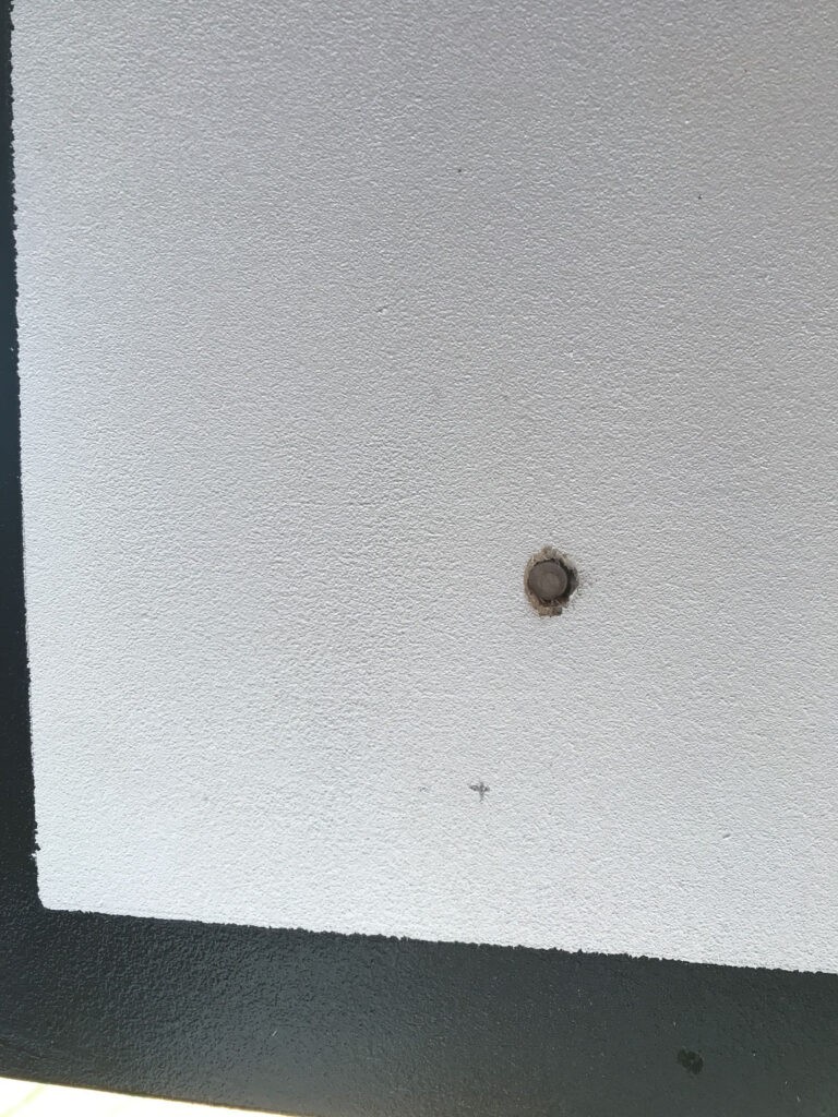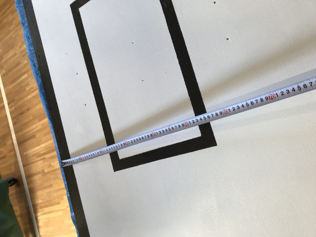 リングの取付位置を確認しながら、ボルト位置にボードを貫通してゆきます。