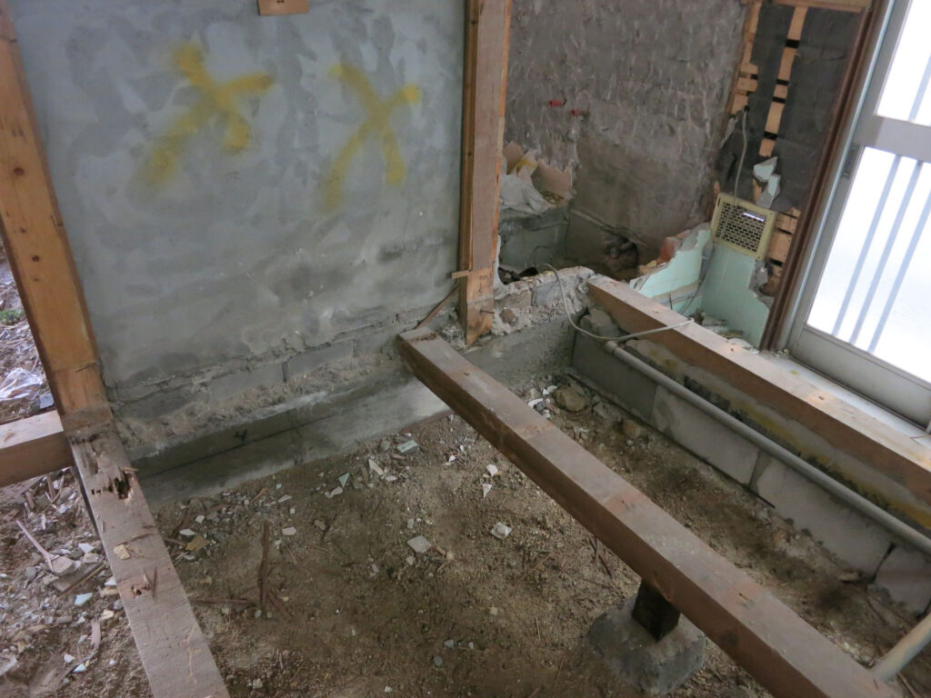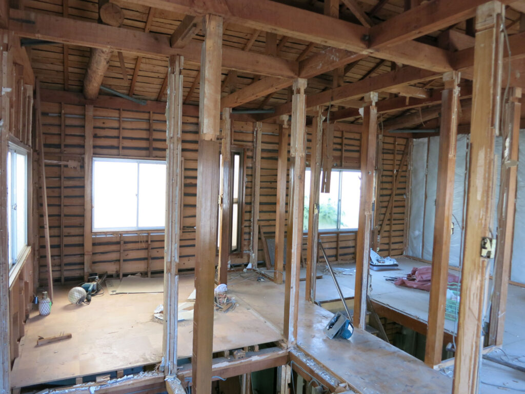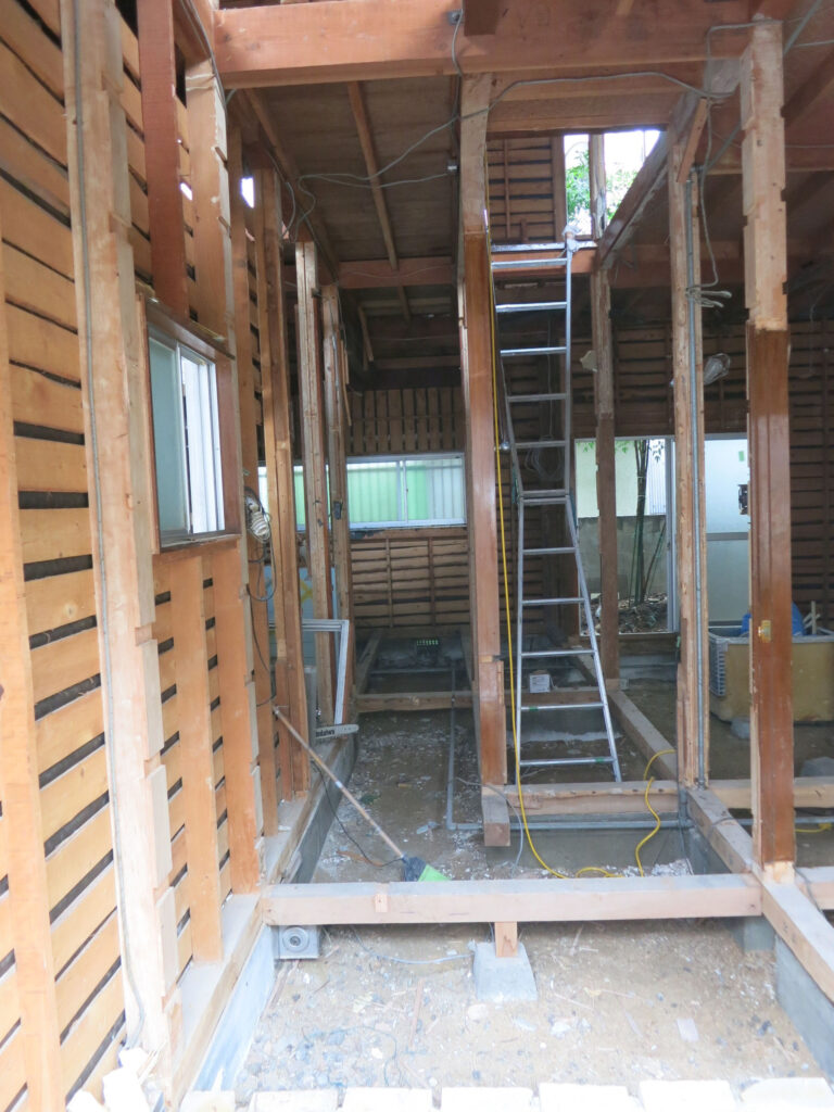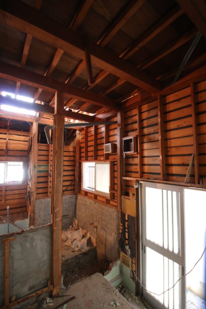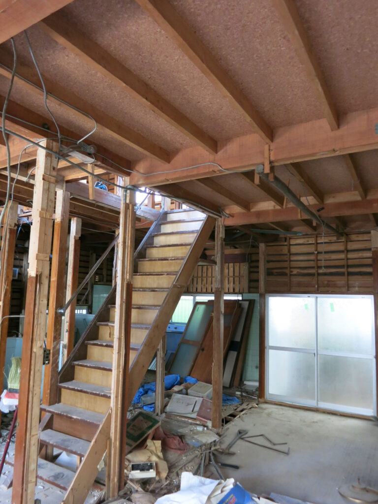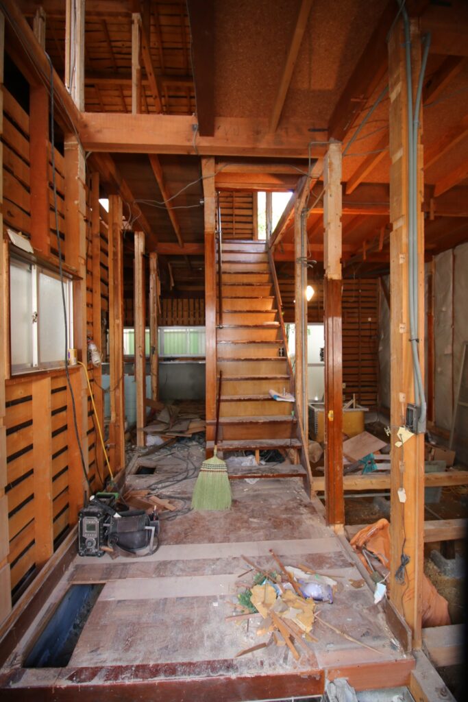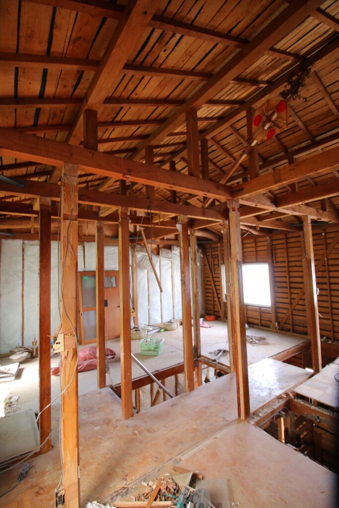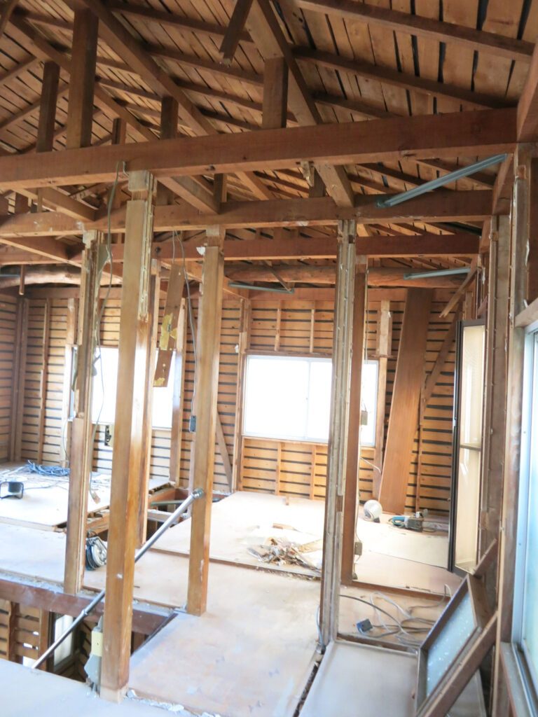 どの部分を撤去して、どの部分を生かして使うか、この後の工程、耐震設計を考えながら撤去してゆく。