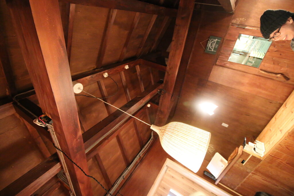 天井、梁などは昔のままで、ラワン合板に柿渋を塗ったという天井や壁の質感が何とも言えない雰囲気を醸し出していた。