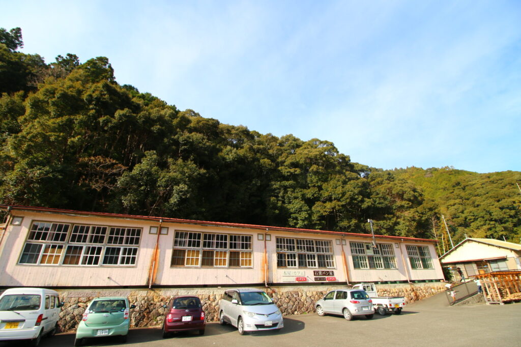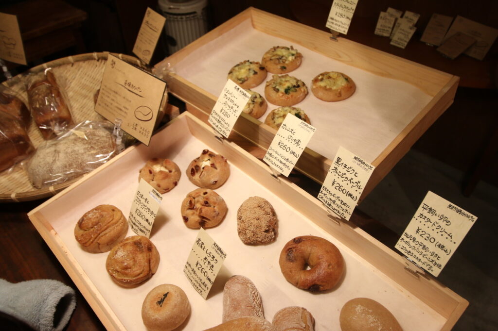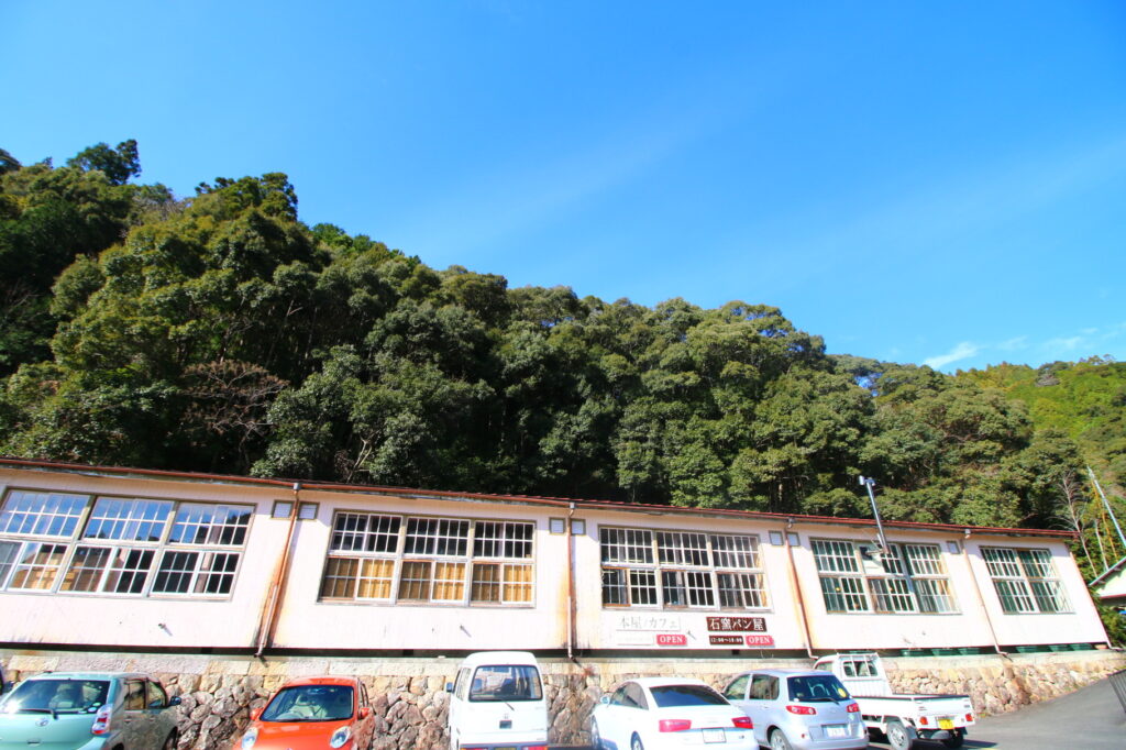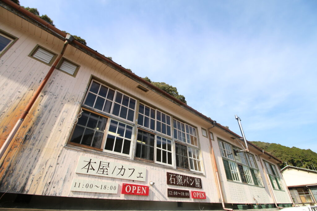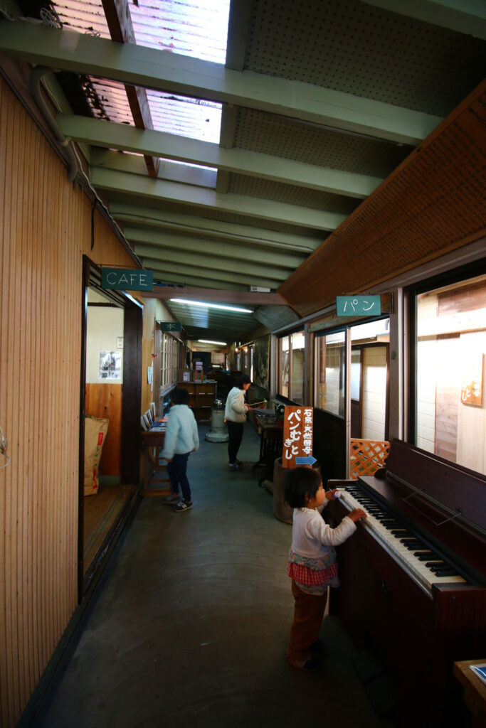 教室群と廊下を挟んで、外には昔体育倉庫だったところをリノベーションしたパン屋さんが。