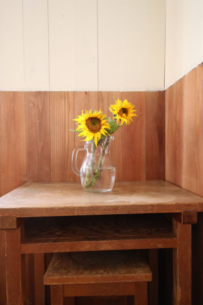昔の材料がそのままの部分と、新たに無垢材を中心に造られたものの調和が美しい。