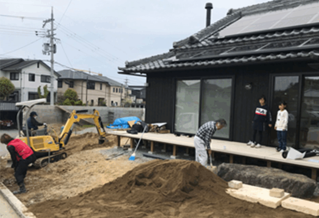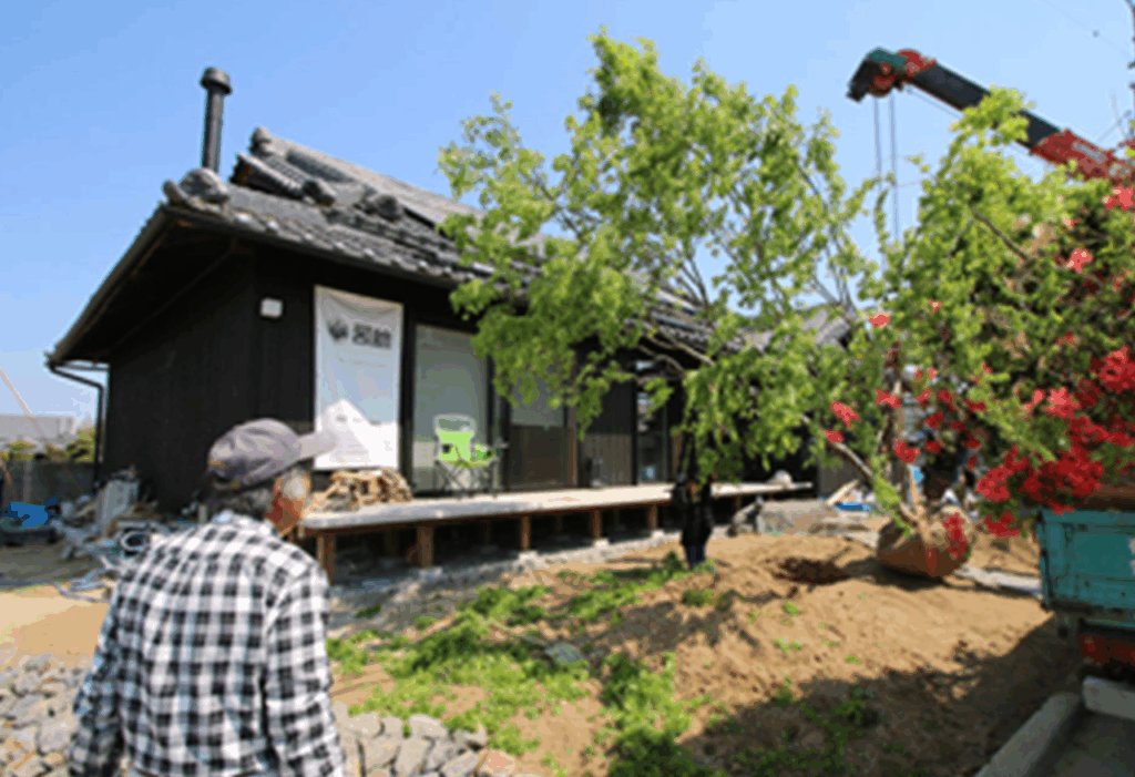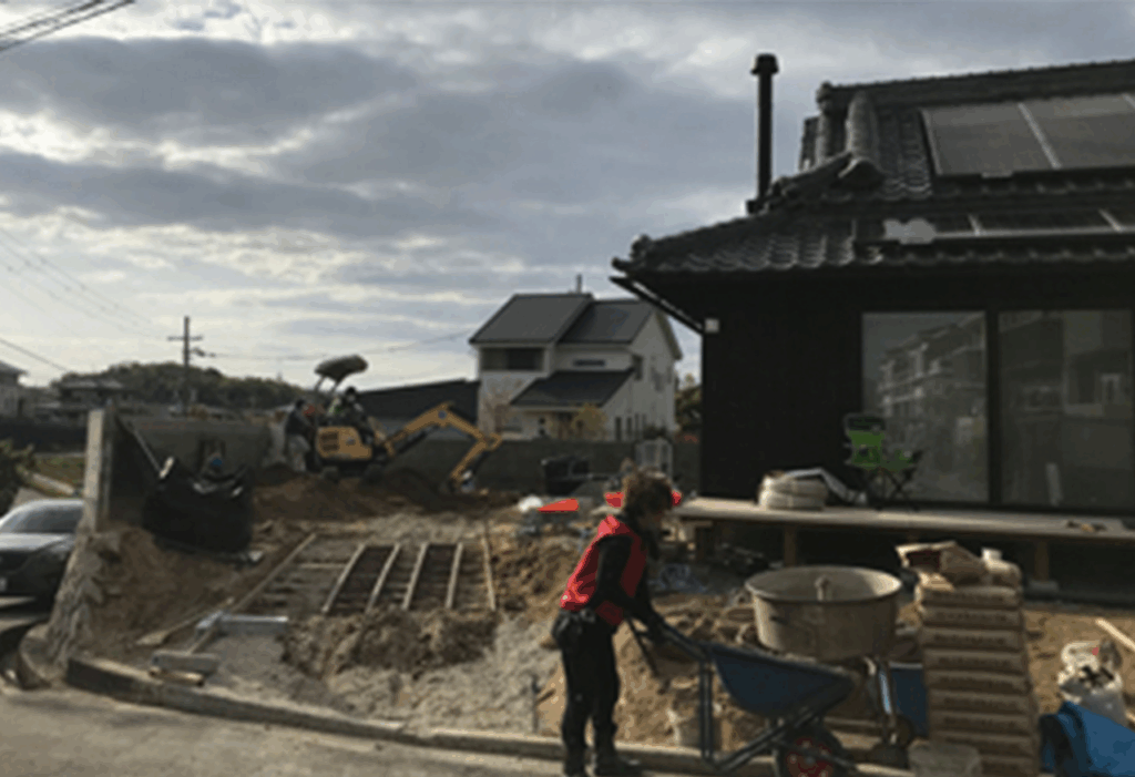 まずは、既存外構の撤去工事から。南面にあったサンルームと、離れの小屋をすべて撤去。