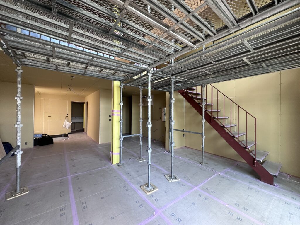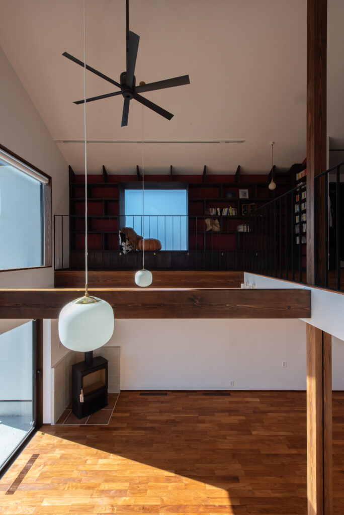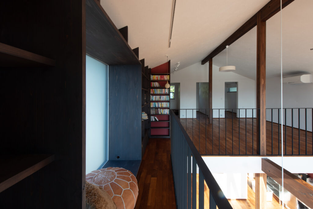 吹き抜けを経て、階段を上がると、またそこにもたくさんの居場所が。
