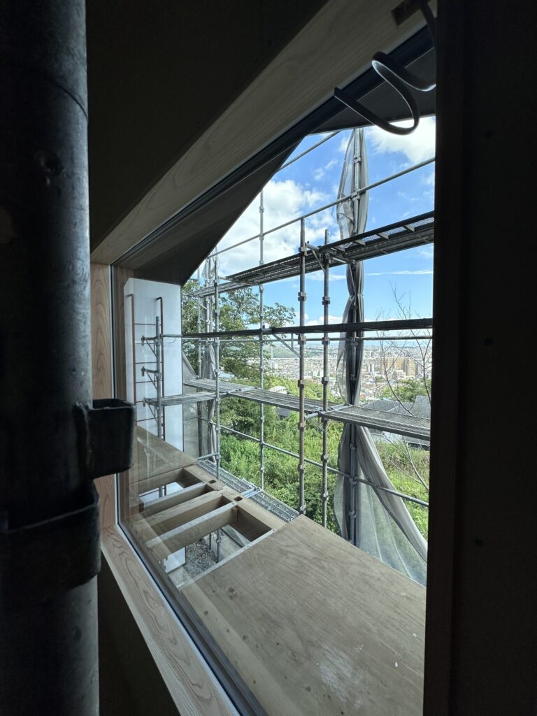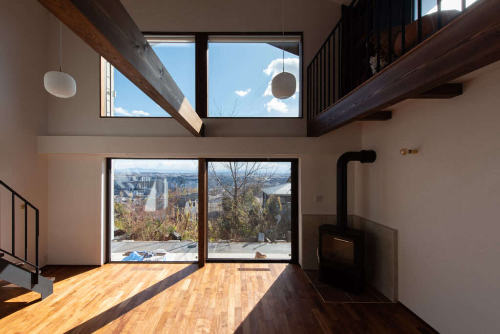 木のサッシを経て見える景色も、この家の仕上げのひとつ、
