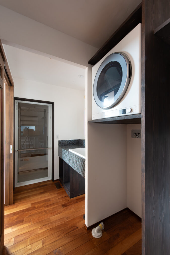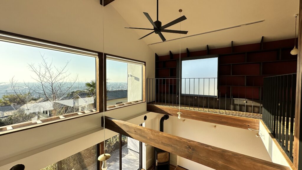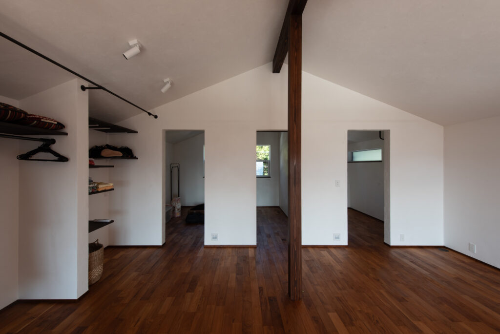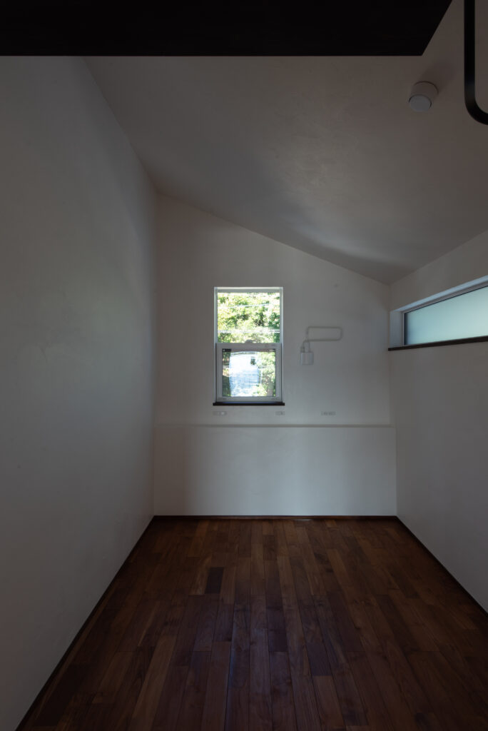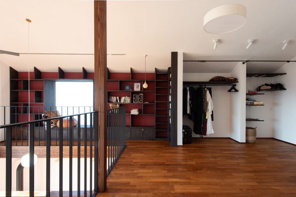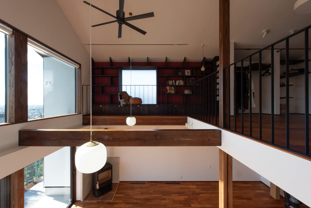 The site faces south and offers a panoramic view of all of Osaka. The façade seen from the road on the north side has impressively carved cedar boards. There is a grand piano in the entrance hall with a slightly low ceiling. From there, when you are drawn into the living room, the calm atmosphere changes completely, creating a bright and airy space. Once you go through the atrium and go up the stairs, there are many places to stay. The view that can be seen through the wooden sash also changes colors depending on the season and time, which is one of the finishing touches of this house. Dynamic plan structure and carefully selected materials. This is a wooden house that expresses a lot of our individuality.