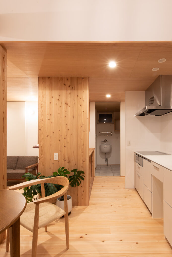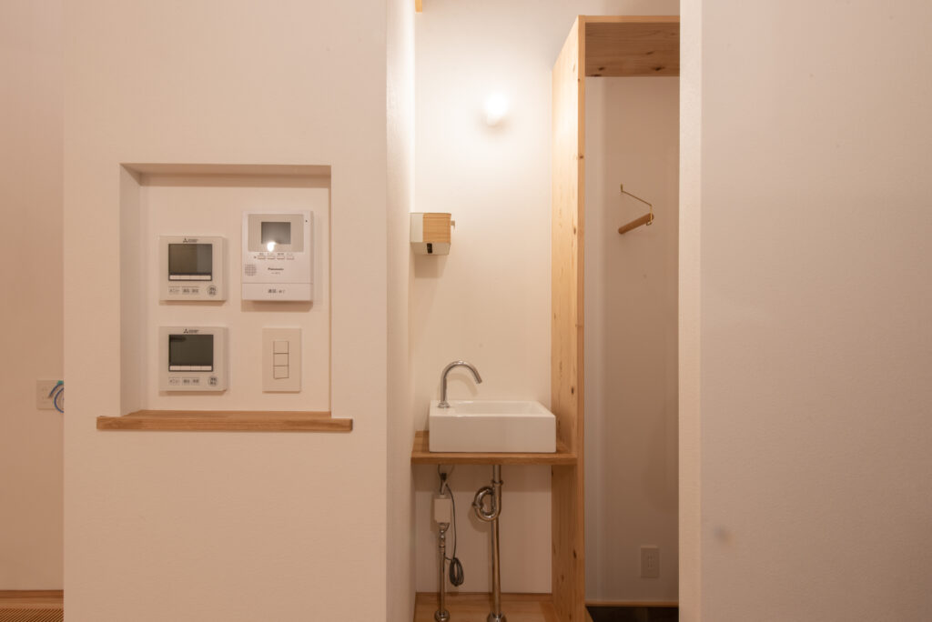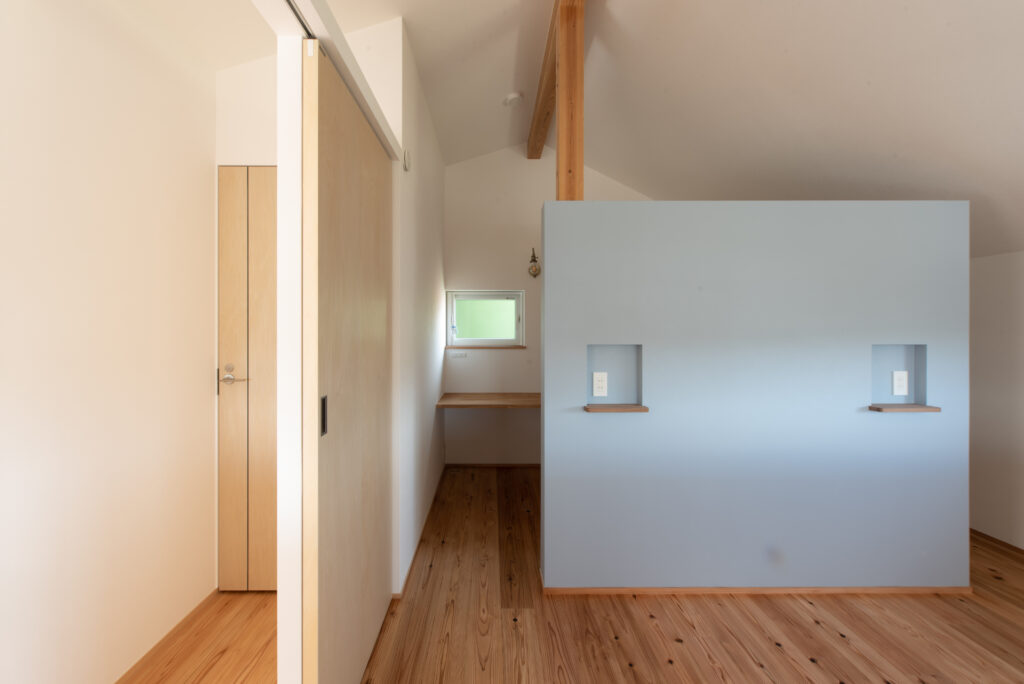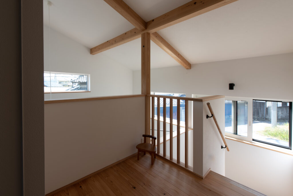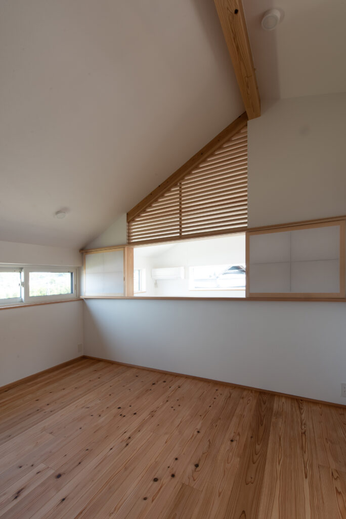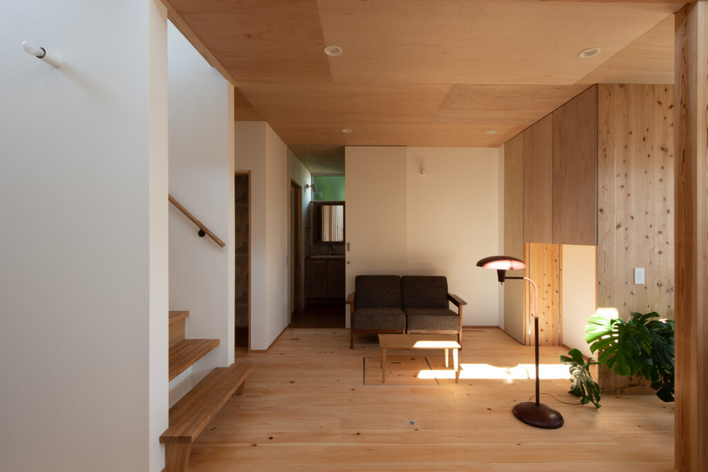 A site surrounded by Japanese countryside scenery, I want to have a potager garden here. Ever since we first met, I have been told about this dream. A ZEH house that is highly airtight, highly insulated, and equipped with solar power generation. When you enter through the south-facing entrance, gentle light pours down from the large atrium, and your line of sight is directed toward the north-facing potager garden. The plan was not based on the assumption that the building would open wide to the south, but rather considered the plan structure, space, functionality, and usability based on the site conditions and requests. As the scene progresses, I feel a sense of freshness.