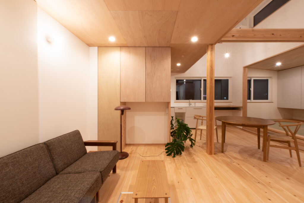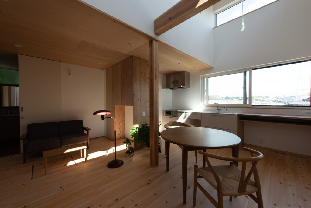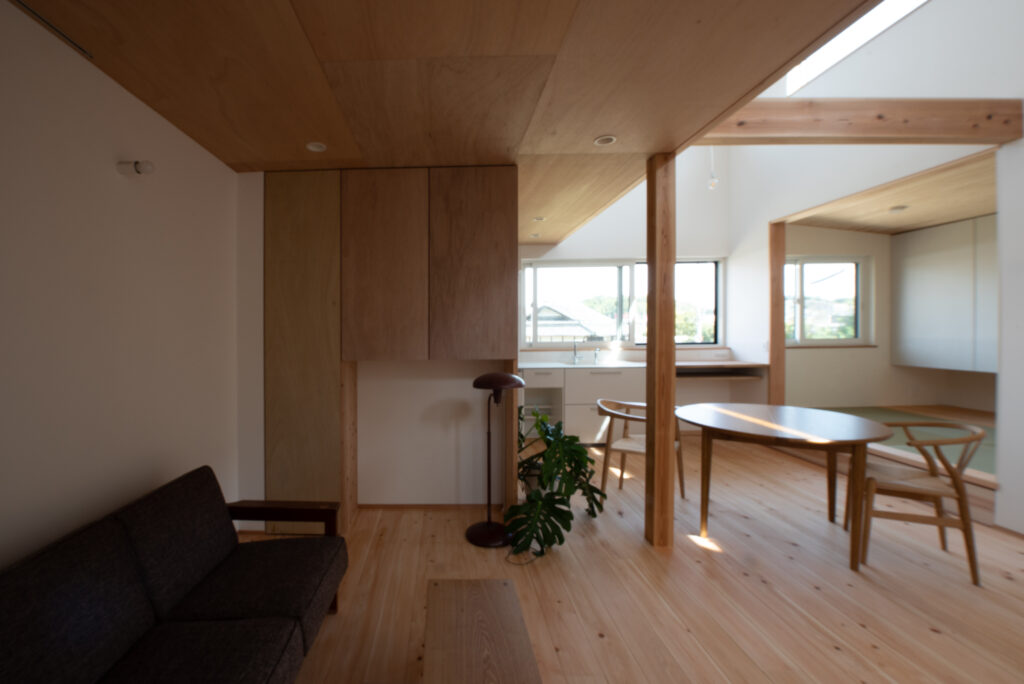 南に大きく開くという前提ではなく、この敷地条件や要望からプラン構成、空間、機能性、使い勝手を考えた計画。