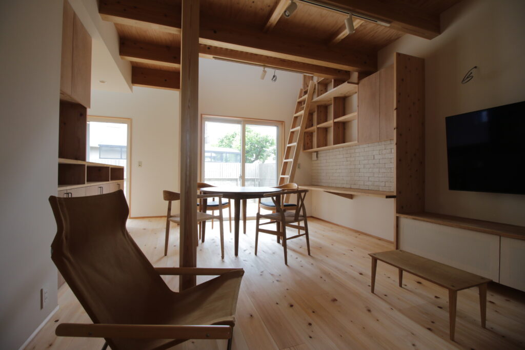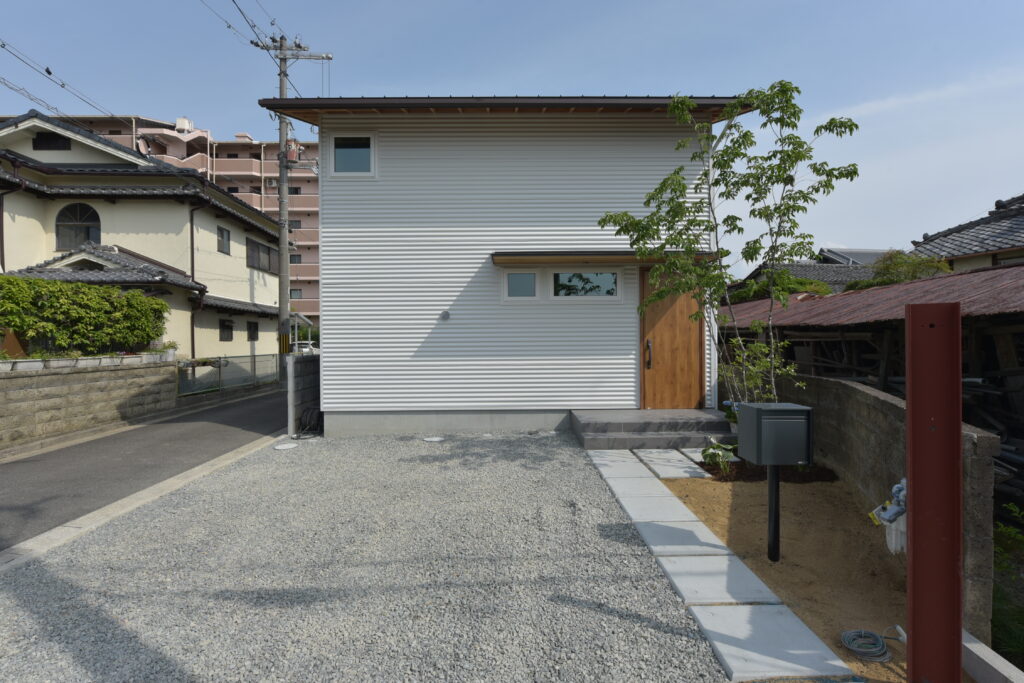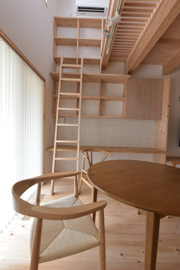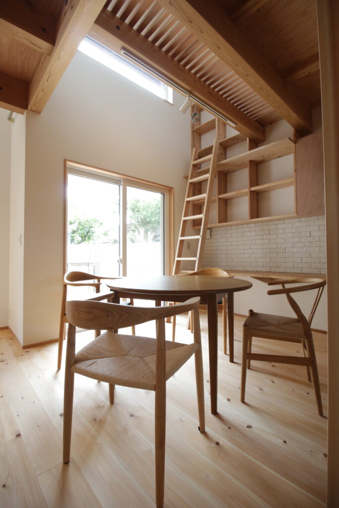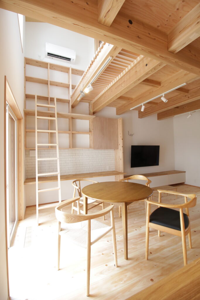 Naka Ward, Sakai City, urbanization control area. There was a used property owned by a relative next to my parents’ house, and I planned to build a new one after purchasing it. It’s next to my parents’ house, so I live in a familiar living environment. Let’s take a look at how you’ve lived as a two-family household in your parents’ home and think about what kind of life you’ll be living from scratch. The architectural plan includes a road and approach on the north side, a garden on the south side, and The floor plan is small but spacious, making good use of the openness and maintaining privacy from the neighbors. When discussing detailed internal usage, We received graph paper from the owner with a detailed drawing of how it would be used, and based on that, we tried to give shape to the way we would live. We have created a lifestyle that cannot be found anywhere else.