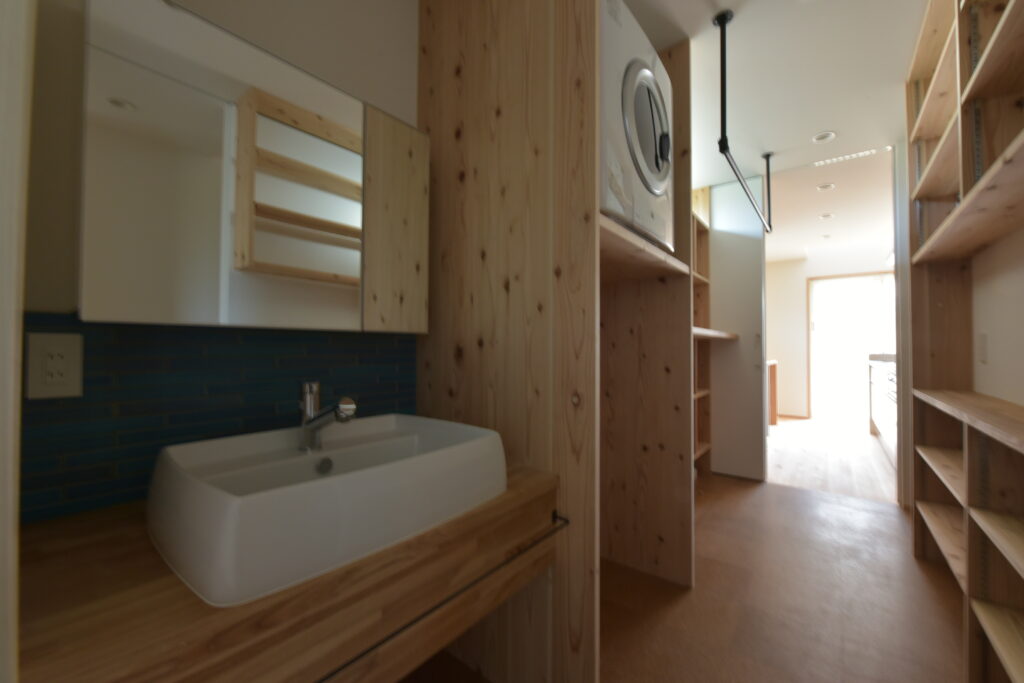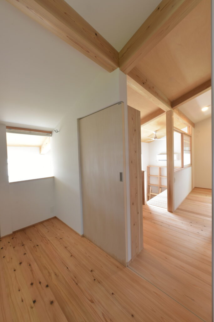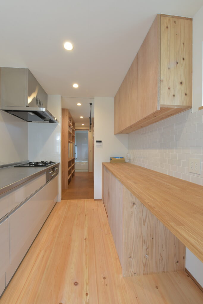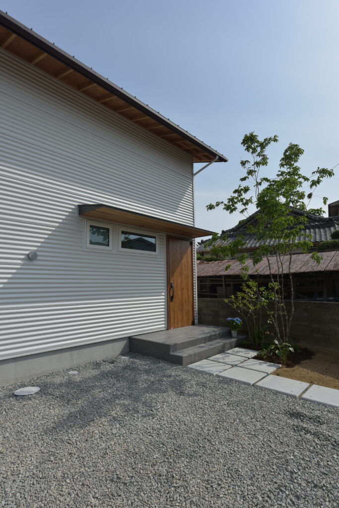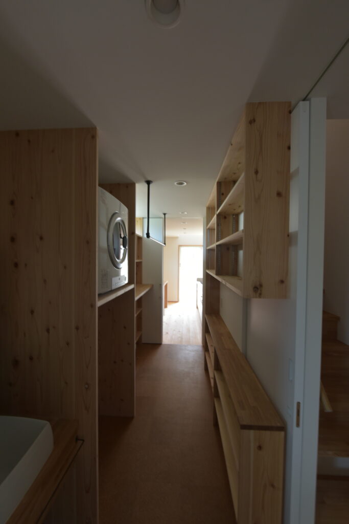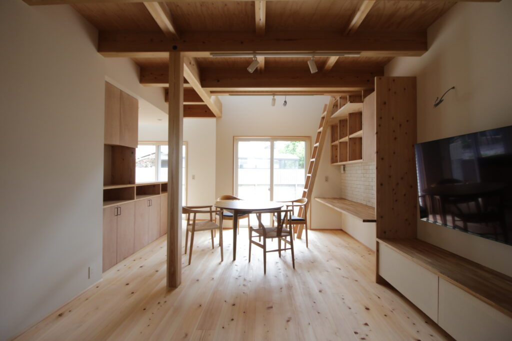 Naka Ward, Sakai City, urbanization control area. There was a used property owned by a relative next to my parents’ house, and I planned to build a new one after purchasing it. It’s next to my parents’ house, so I live in a familiar living environment. Let’s take a look at how you’ve lived as a two-family household in your parents’ home and think about what kind of life you’ll be living from scratch. The architectural plan includes a road and approach on the north side, a garden on the south side, and The floor plan is small but spacious, making good use of the openness and maintaining privacy from the neighbors. When discussing detailed internal usage, We received graph paper from the owner with a detailed drawing of how it would be used, and based on that, we tried to give shape to the way we would live. We have created a lifestyle that cannot be found anywhere else.