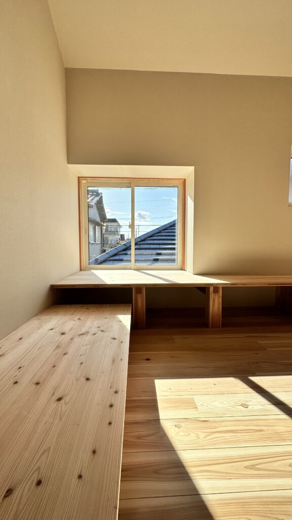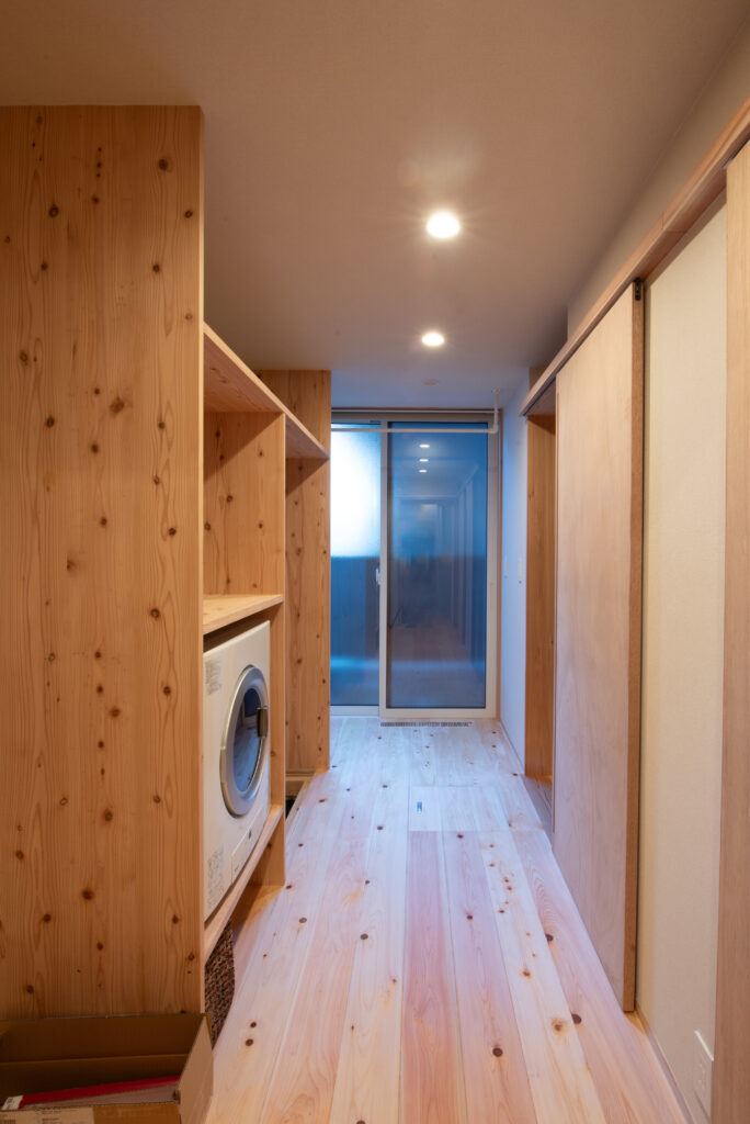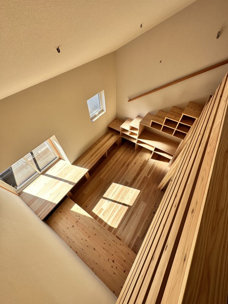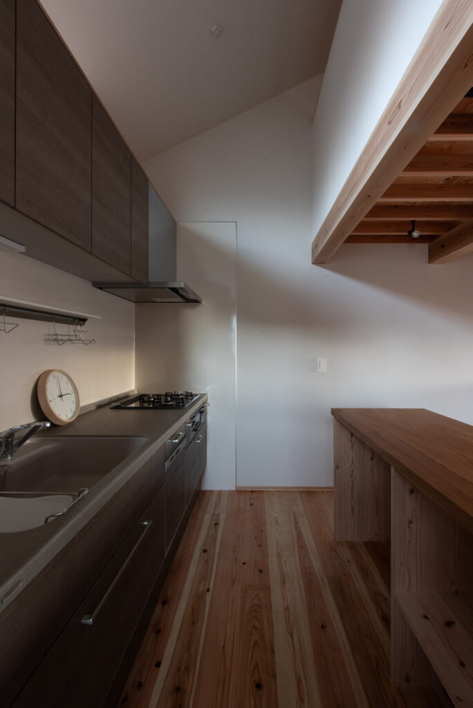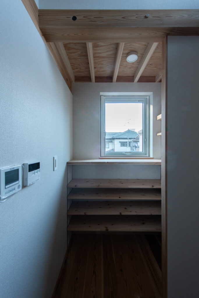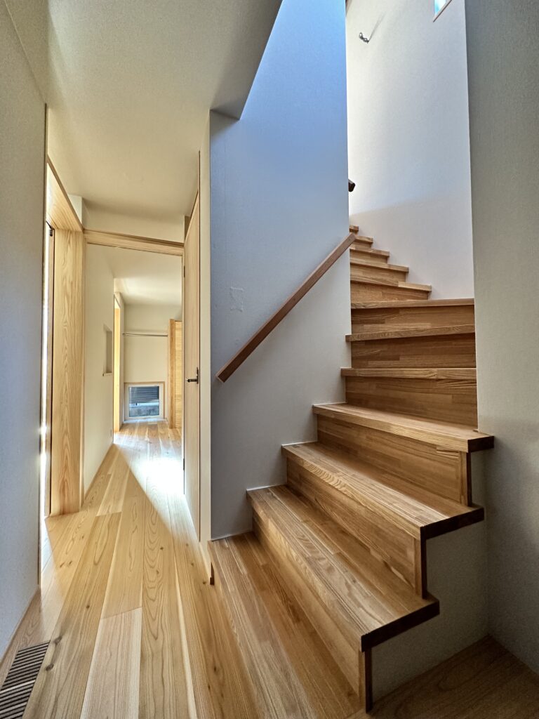 We consulted with you before deciding on the site. One day, a customer asked us about this site. This is a flagpole site, and there is a flagpole section from the road to the site, and there is no garage space as customers are not allowed to ride in their cars. It was surrounded by neighboring houses on all four sides, but only the south side faced the lower part of the neighboring house. Zoned private zone on the 1st floor and LDK on the 2nd floor. Structurally, there are many partitions on the first floor, and the plan makes sense from a structural design perspective. How can we make the 2nd floor feel open while the 1st floor is narrow and easy to use? Although the site is small, it is a functional, beautiful, and perfect house filled with many dreams.